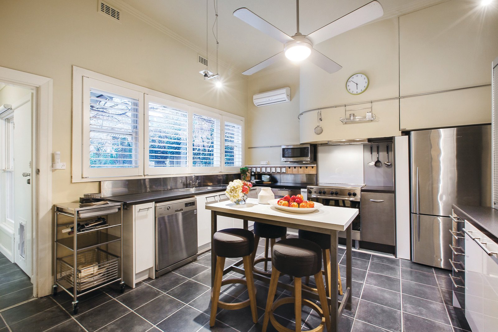 A return arched verandah introduces the interior showcasing a beautiful period ambience with decorative cornices, coloured leadlight windows, Wunderlich panels/ceilings and dark stained timber floors. A central hallway opens to charming period-style front rooms and flows to a fully self-contained apartment - which could be used as a teenage retreat, additional family accommodation or home office with its own entrance. The accommodation also comprises sitting room with gas fire place opening to a dining room, three double bedrooms, period-style bathroom and a study. Plus a north-facing stainless steel appointed kitchen, adjacent laundry and powder room which opens to a leafy garden and outdoor dining area, gently shaded by a wisteria. Other features include ducted heating, R/C air conditioners, OFPs, ample storage, garden shed plus a garage with tandem off-street parking accessed from David Street.