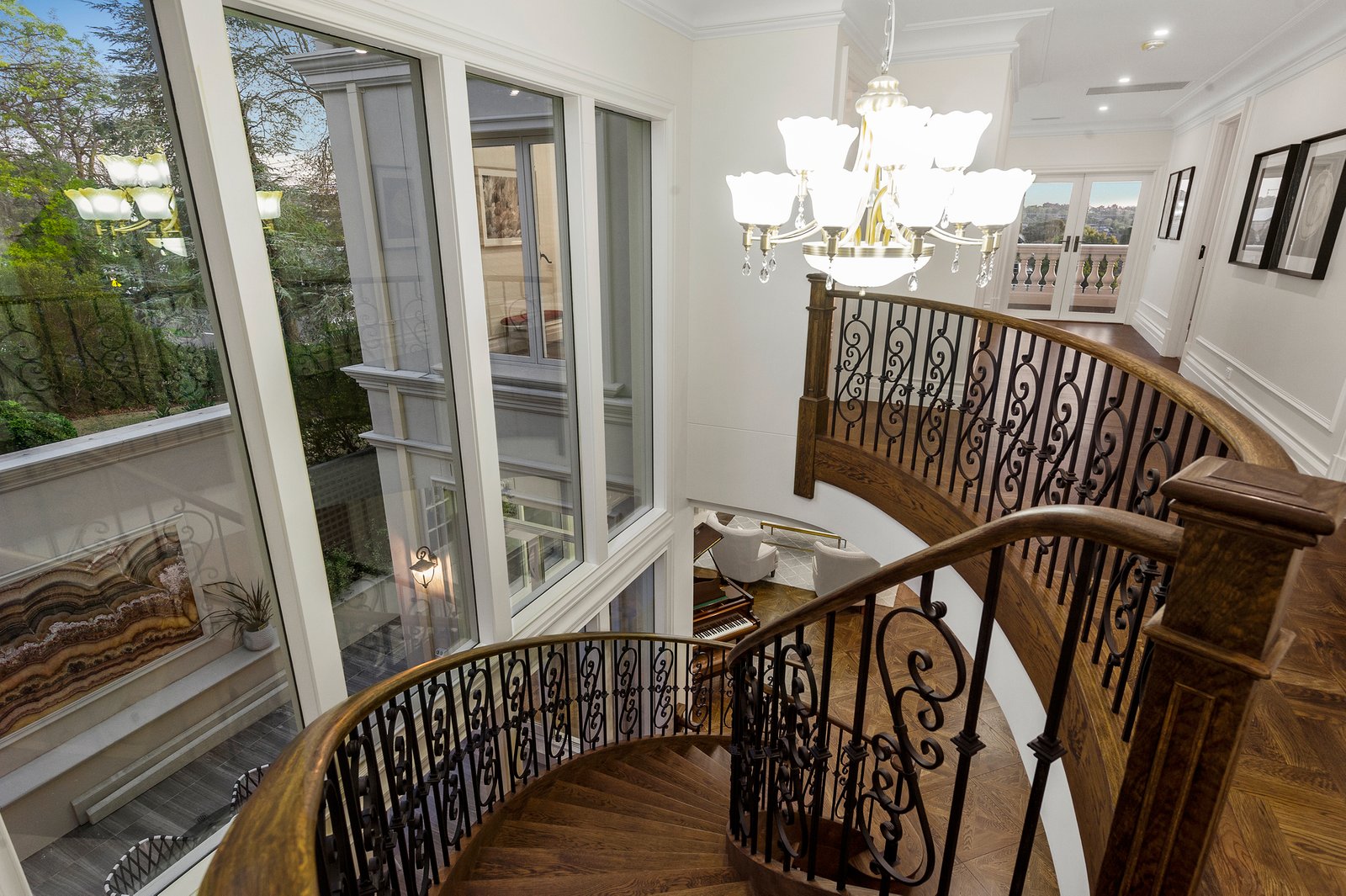 Luxuriously appointed, there is a powder room, internet-controlled lighting, double glazing, zoned central heating/air-conditioning, security cameras and a four-car basement garage behind automatic gates.