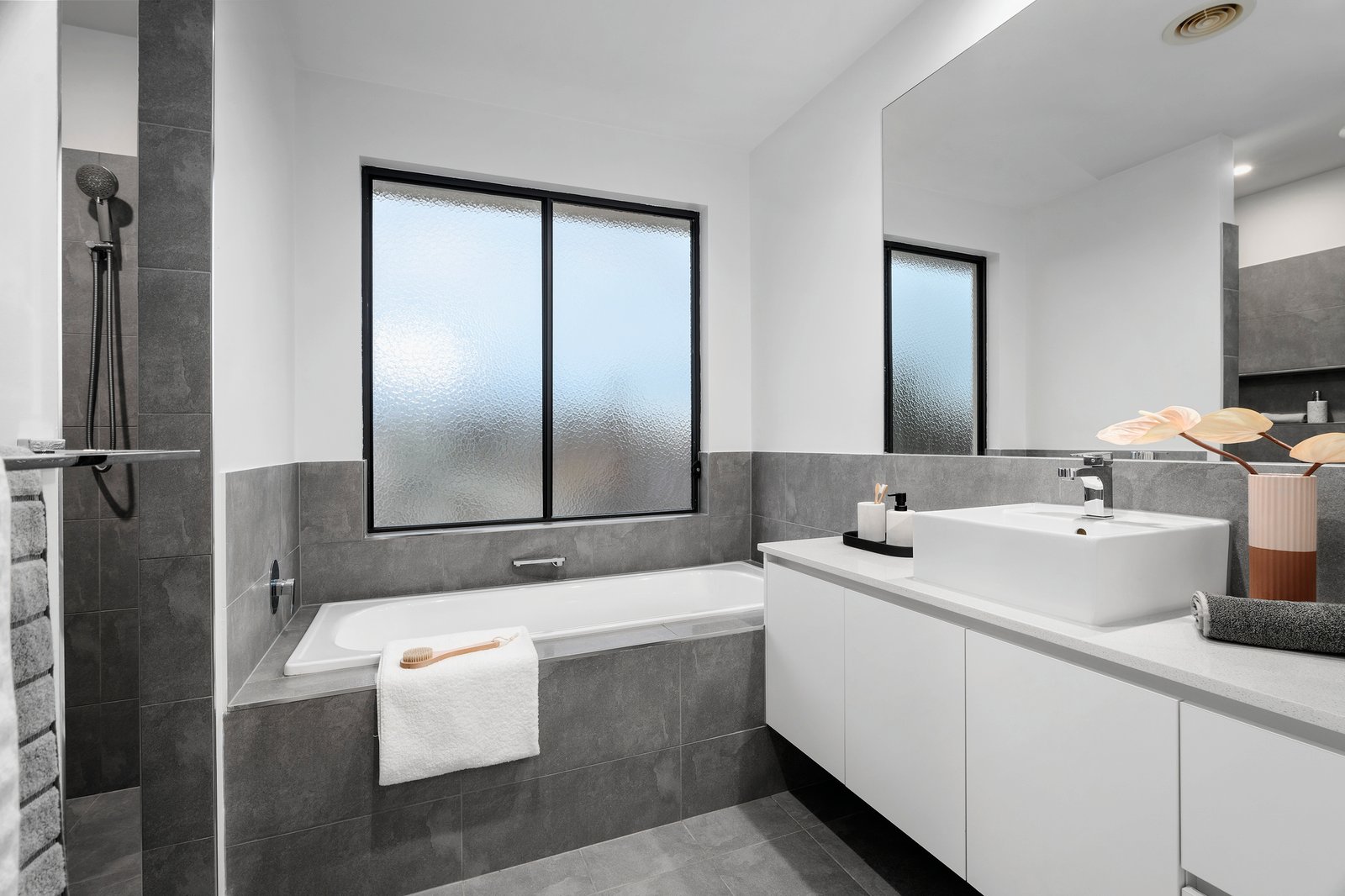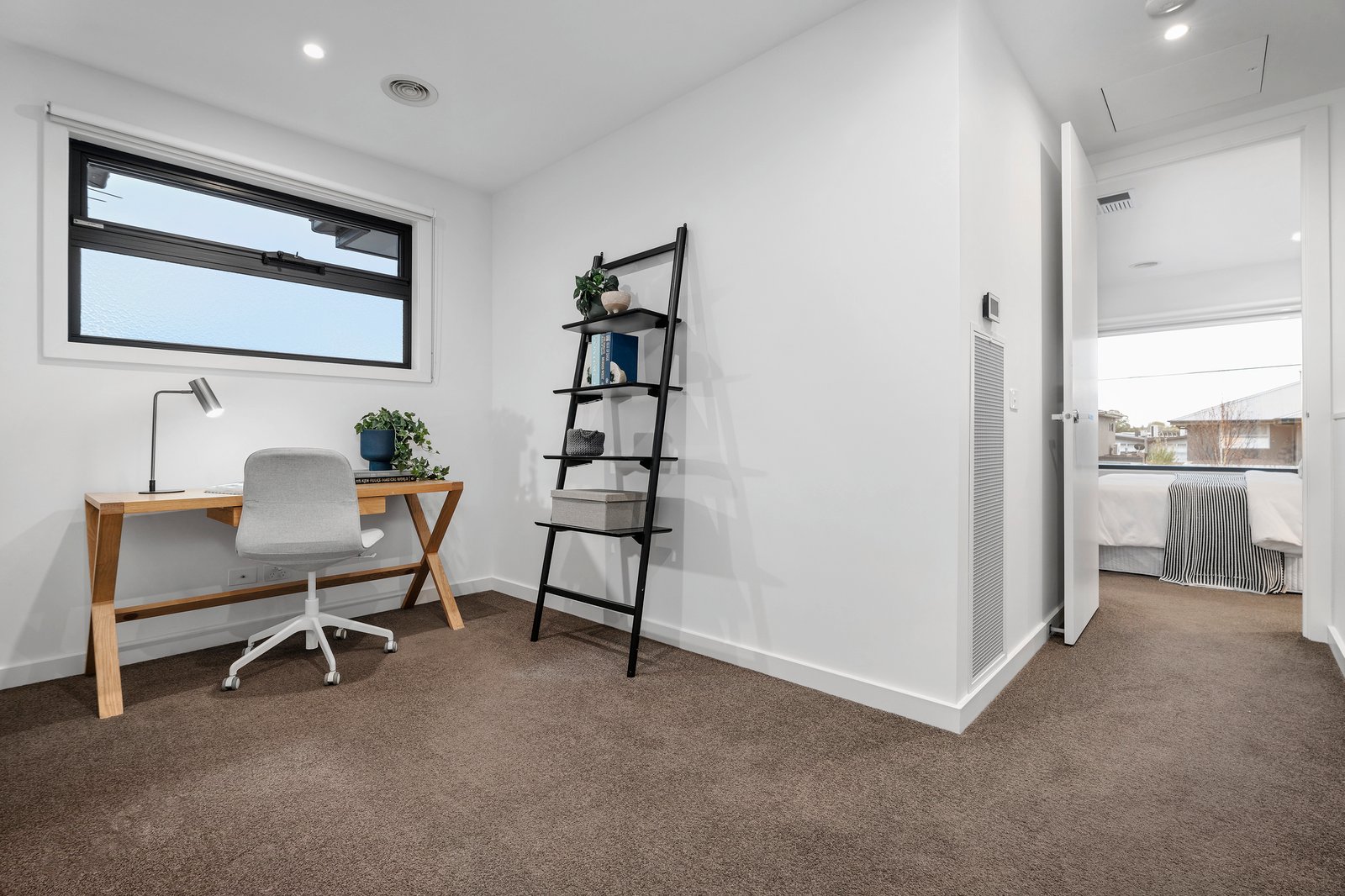 Ascend the stairs to the first floor where an inviting retreat serves the bedrooms, providing flexibility for a range of lifestyles. Two robed bedrooms share the main bathroom with separate shower and bath, while a luxurious main bedroom features a walk-in robe and deluxe ensuite and is bathed in glorious natural light. A ground floor fourth robed bedroom with an adjacent bathroom extends the possibilities.
