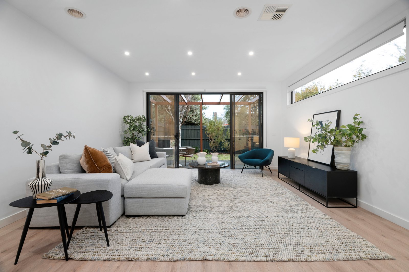 Enduring contemporary charm defines this pristinely presented home that offers a compelling blend of modern ease and light filled living. A bright hallway presents an immediate view of the landscaped garden to the rear and flows through to the open plan living room where sliding doors and cleverly positioned windows provide a connection with outside. High-end appliances and stone benchtops grace the elegant kitchen, and, outside, a terrace and pergola are perfect for entertaining and everyday enjoyment.