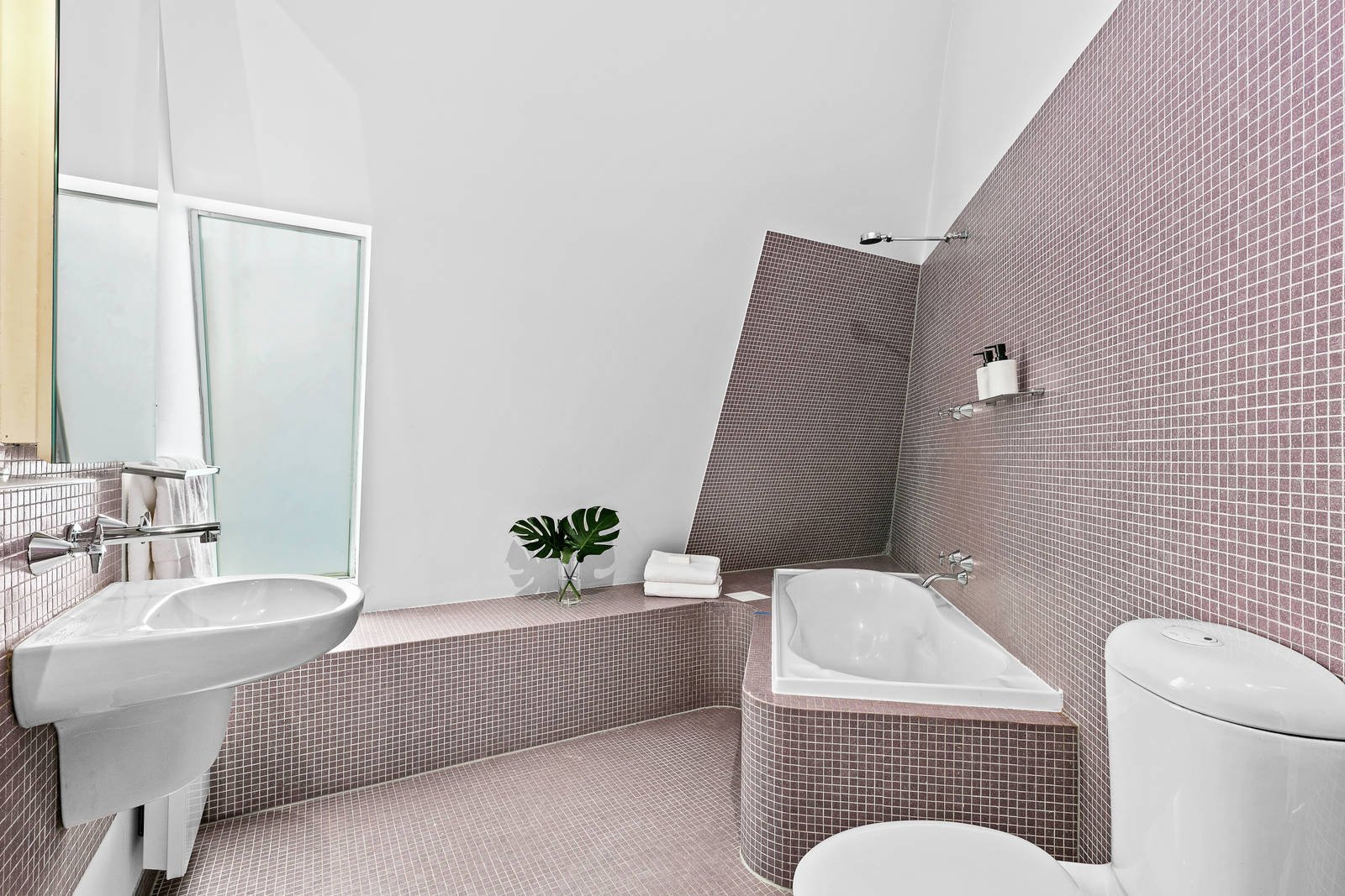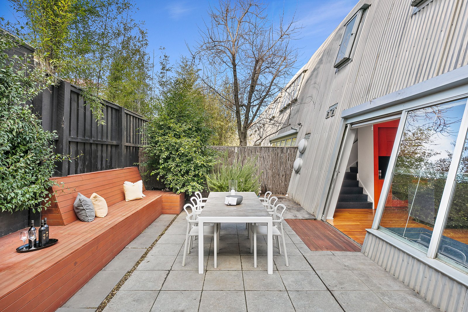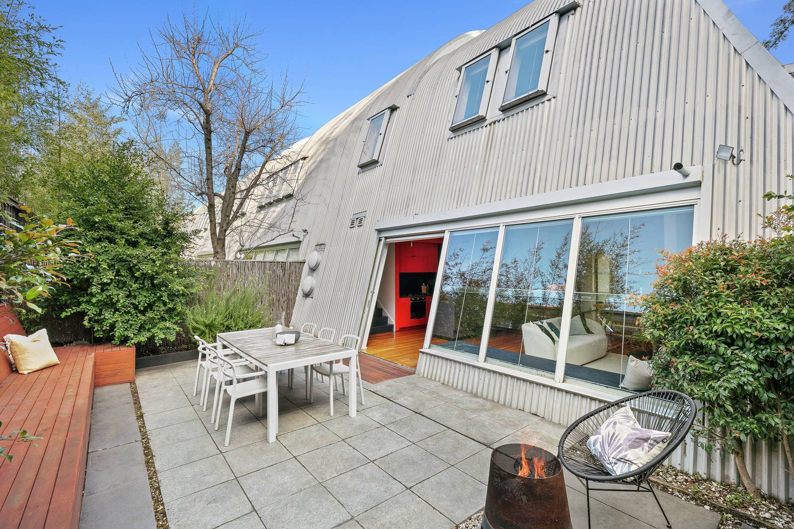 Under soaring ceilings, the home's eye-catchingly generous open-plan living area has been brilliantly designed for a sumptuous al fresco flow and is cleverly zonable with a sliding door that creates a possible study or third / guest bedroom. Meanwhile, the kitchen is gourmet standard with a selection of SMEG and Qasair appliances as well as a large courtyard that basks in northerly sun and underlines the home's entertainers' spirit. Additional highlights include a lock-up garage with direct internal access to the main home, a second parking space, central heating, air conditioning, huge robes in one of the bedrooms and a clever loft in the other, as well as a large bathroom upstairs and powder room downstairs.