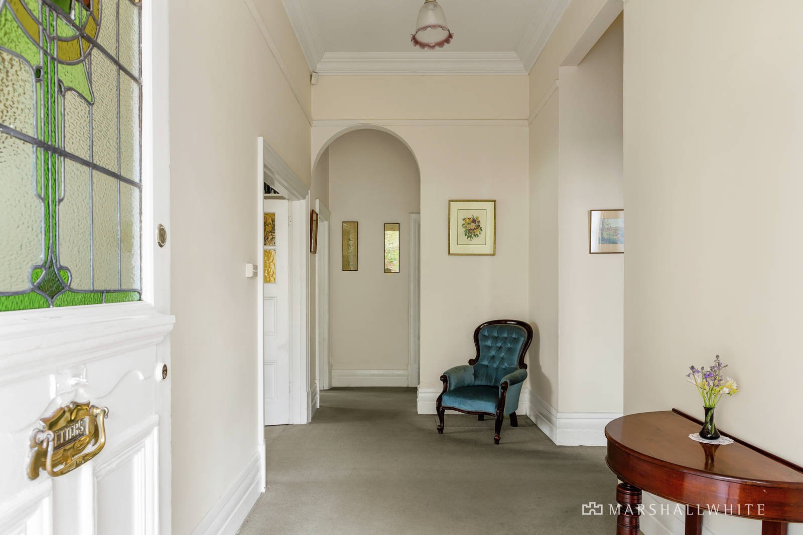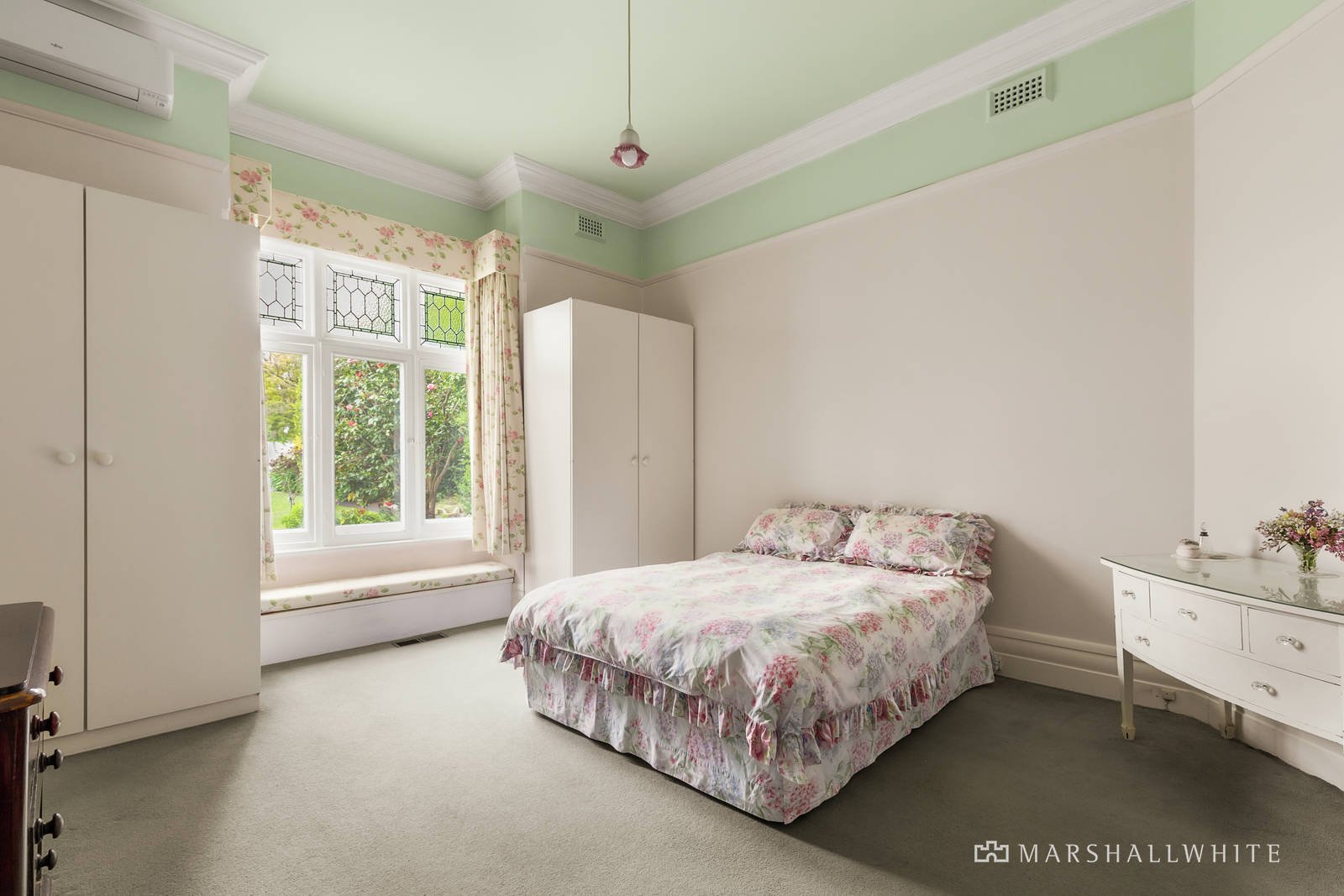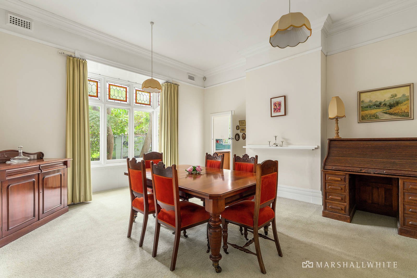 The wide central hall featuring high ceilings and leadlight windows flows past an elegant sitting room, spacious bedrooms and a glorious formal dining room with bay window. A generous L-shaped living and dining room is served by a large separate kitchen with breakfast bar. The bedrooms - three double and one smaller - are accompanied by two bathrooms. The home is beautifully positioned in an expansive garden setting.