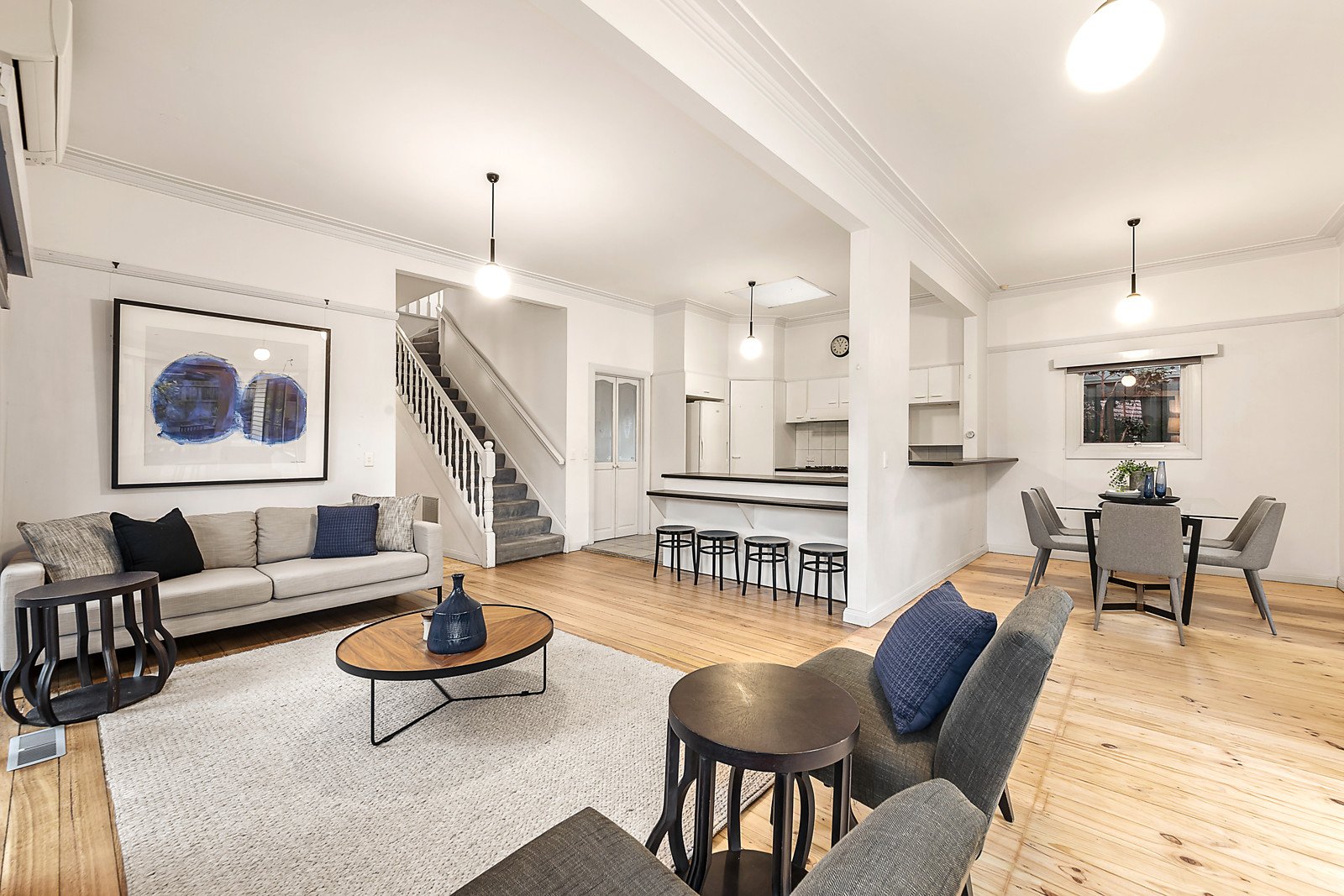 Baltic pine floors and high ceilings grace the wide entrance hall, elegant sitting room with a gas fire and the beautiful formal dining room. Northern light streams through the well-equipped modern kitchen and the expansive surrounding living and dining areas opening to a large, covered deck overlooking the private northwest garden with carport accessed via a side lane. The spacious main bedroom with en suite and built in robe, a second double bedroom and bathroom are serenely positioned downstairs while upstairs there are two additional bedrooms with robes and a bathroom with spa bath.