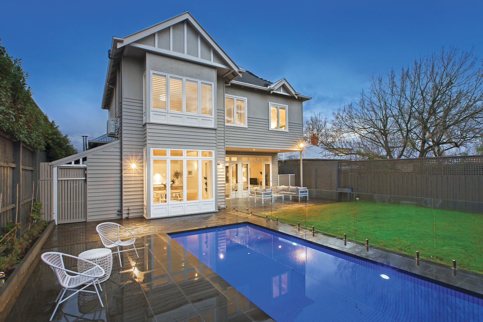 This impressive Edwardian family residence c1910 has been enhanced by imaginative renovations coupled with a two-storey extension delivering a superb environment for family living and entertaining plus loads of space and style to enjoy. The designer-styled interior is faultlessly presented following refurbishment and the neutral toned interior comprises dark stained floors and arched hallway opening to a study with OFP, generous formal living and dining with two-way OFP, guest bedroom, pristine fully-tiled bathroom and flowing to the north-facing extension incorporating a laundry+chute, superbly appointed kitchen with CaesarStone bench-tops, island bench, nickel Perrin and Rowe tap ware, Shaws double sink, Miele stainless steel oven, induction cooktop and integrated Liebherr fridge plus an expansive informal family domain opening to a deck and azure blue pool and spa in a private rear garden. Whilst upstairs has a retreat, walk-in linen press, three further bedrooms, generous main WIR and fully-tiled ensuite, family bathroom plus storage area or potential play room. Other features includes Plantation shutters, ducted heating, split-system R/C air-conditioners, easy care gardens, garden storage, remote front gates, carport plus off-street parking.
