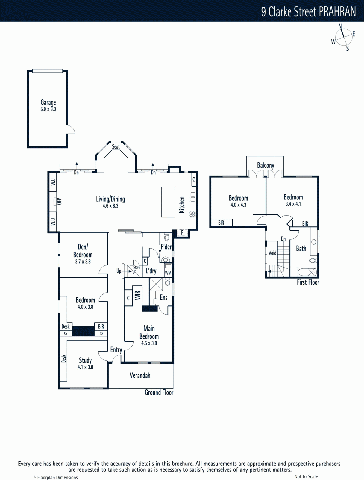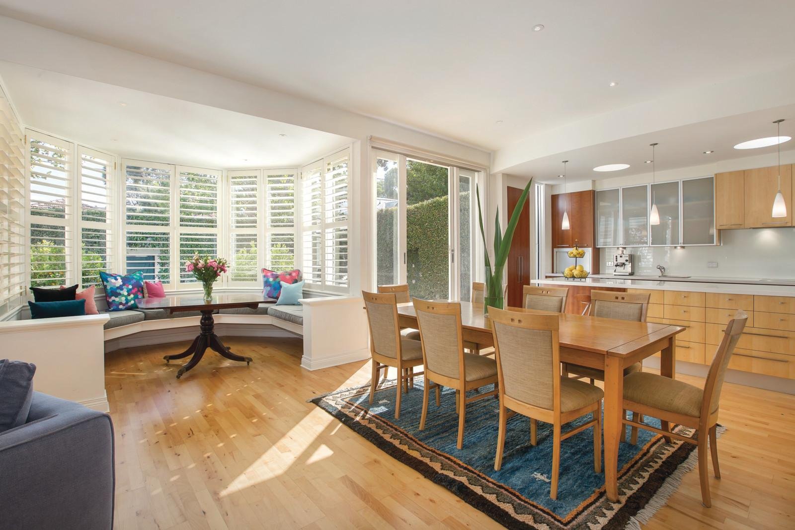 The wide arched hallway boasting timber floors and high ornate ceilings introduces a versatile floorplan perfect for every stage of family life. A beautifully spacious fitted study or sitting room plus den or 5th bedroom are complemented by a generous north-facing living and dining area with wonderful built in semi-circular dining alcove and gourmet kitchen featuring stone benches and European appliances. French doors open to a picturesque entirely private north-facing manicured garden ideal for al fresco dining. The gorgeous main bedroom with stylish en-suite and walk in robe and second downstairs bedroom with built in robe and desk are matched upstairs by two further bedrooms with built in robes, balcony and bright bathroom. In a highly sought after neighbourhood, this glorious home also includes ducted heating, RC/air-conditioning, alarm, plantation shutters, powder-room, laundry, irrigation and garage via Summers St. Land: 391sqm approx.