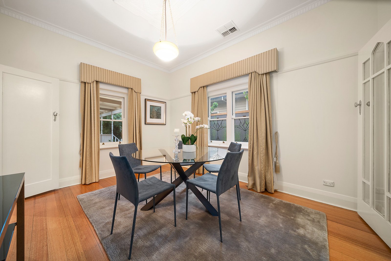 A picket fence and line of Iceberg roses in a quiet, family-friendly tree-lined street forms the perfect back-drop for this pretty Californian Bungalow. Progressive renovations and an extension have delivered an inviting contemporary ambience whilst retaining period features including leadlight cut-glass windows and decorative ceilings in keeping with the era. A neutral toned interior provides a flowing and flexible floor-plan ideal for families of all ages. A black and white tiled entrance leading to a sitting room and adjacent dining room, two bedrooms with BIRs including a main with an ensuite adjoins an expansive extension incorporating a further two bedrooms also with BIRs, a study, family bathroom, laundry and powder room. An informal living and dining room incorporating a superb CaesarStone and prestige Miele-equipped kitchen with WIP and concealed bar and sliding French doors open on to a wrap-around, split-level deck and leafy, private garden - ideal for entertaining family and friends. Other features of this excellent family home include ducted heating and R/C cooling, OFPs, loads of storage including an attic, a garden shed and workshop plus off-street parking.
