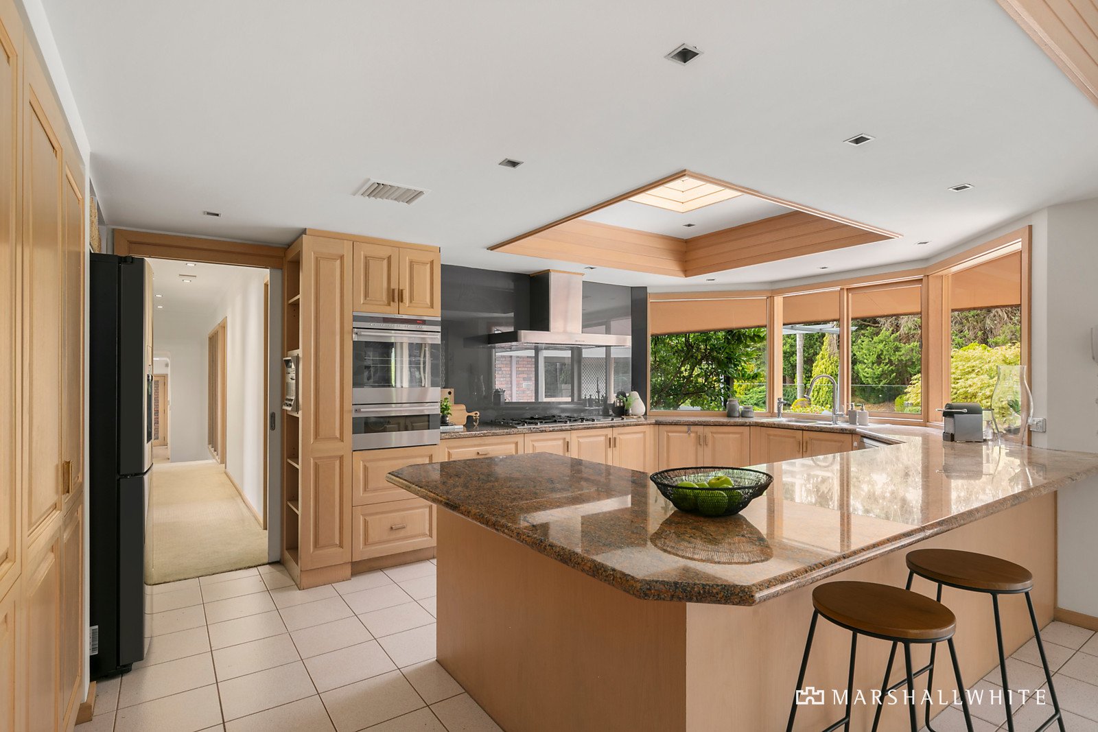 The home's heart is a stone-topped kitchen that has been impressively appointed with a Miele cooktop, plenty of cabinetry and a wrap-around breakfast bar, all overlooking vast family meals and living. Effortlessly, the living areas flow outdoors to a partially undercover entertaining zone where a built-in BBQ holds pride of place in front of the in-ground swimming pool and spa all with the tennis court as its lavish backdrop.