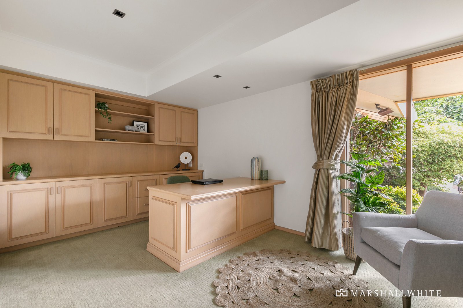 Set behind an immaculate, garden-surrounded circular driveway, this striking home also features two double lock-up garages, intercom entry, and central and zoned heating and air conditioning for year-round enjoyment.
