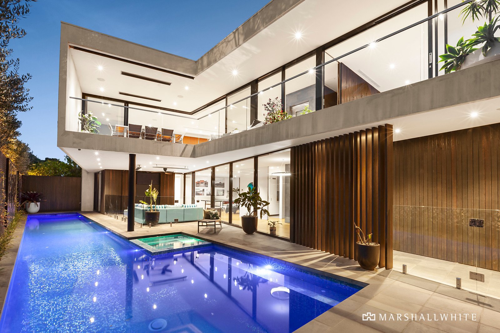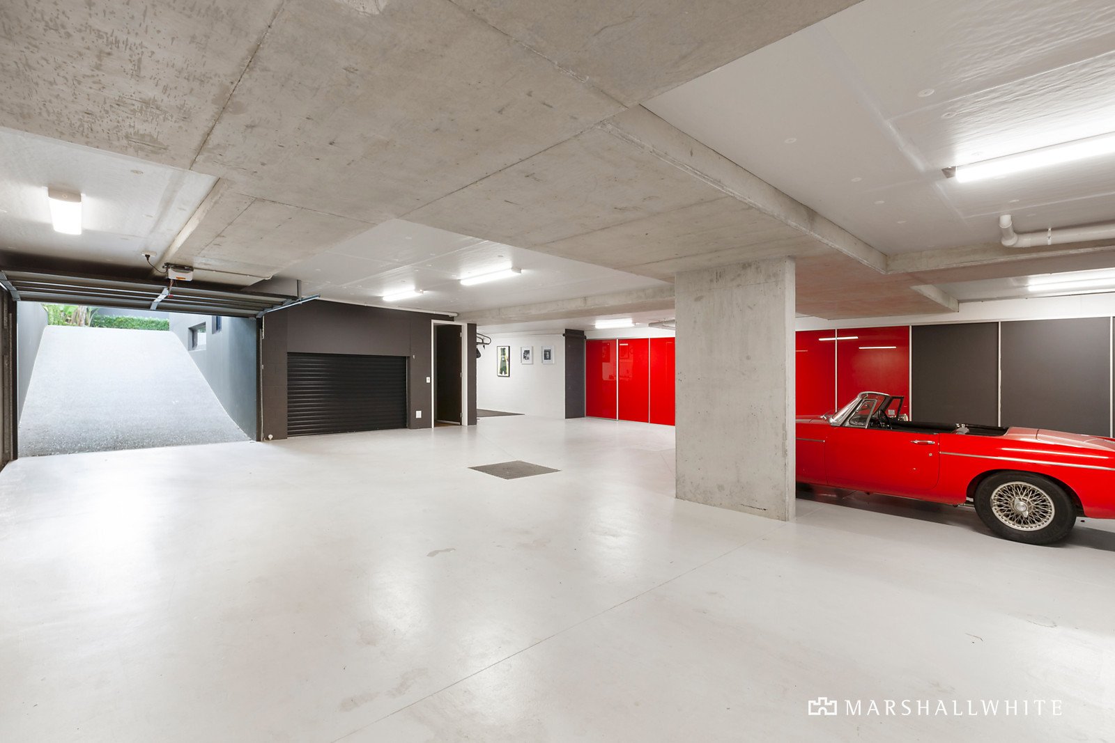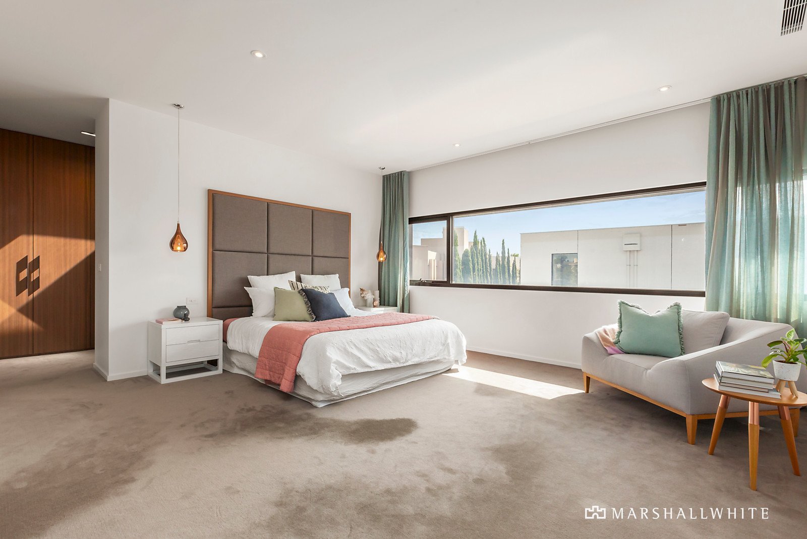 A modern facade of rendered blockwork and sawn cedar timber cladding sets the scene for the vast and luxurious interior that reveals itself. Cleverly combining timber and concrete plus large windows that provide uninterrupted bay and city views.