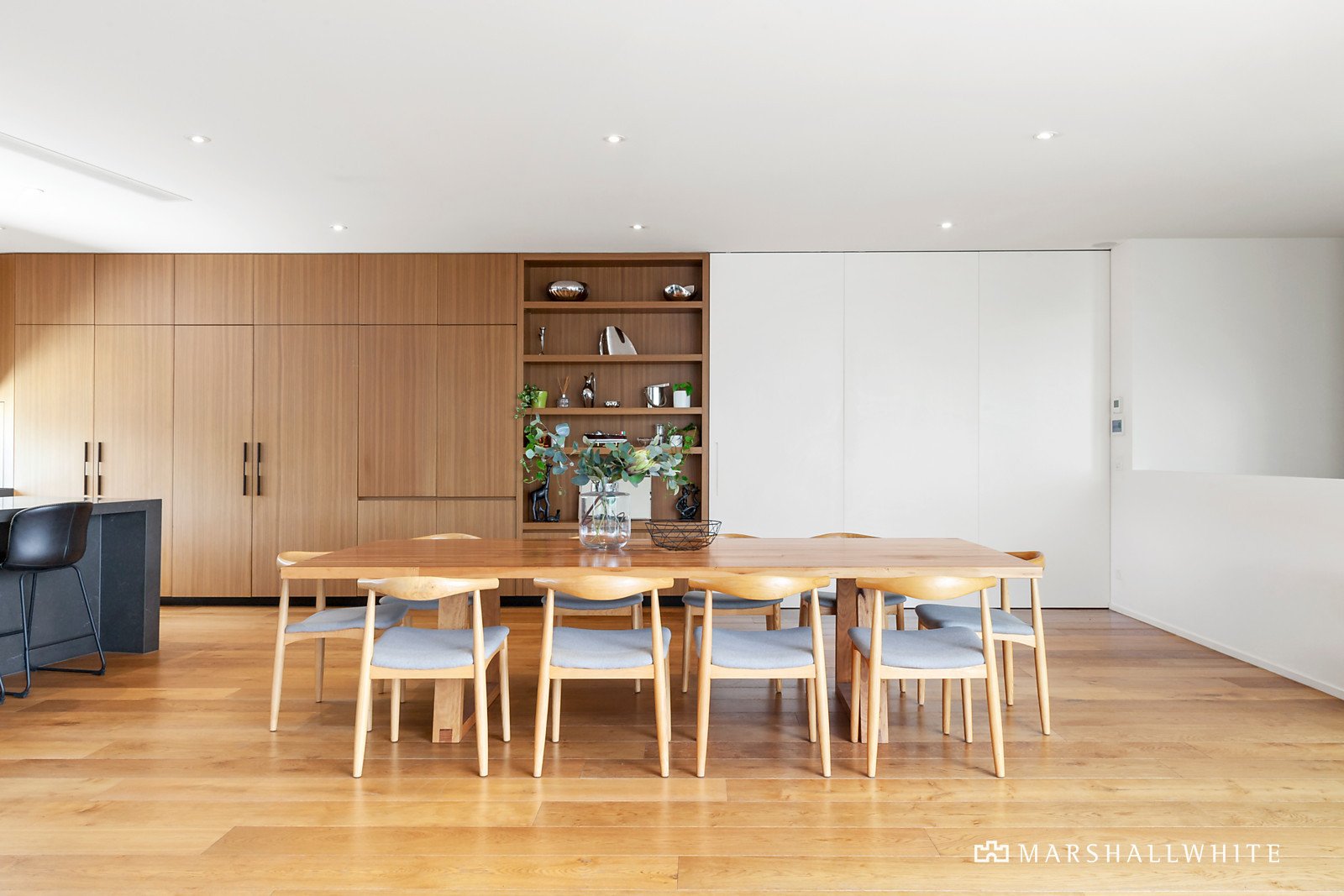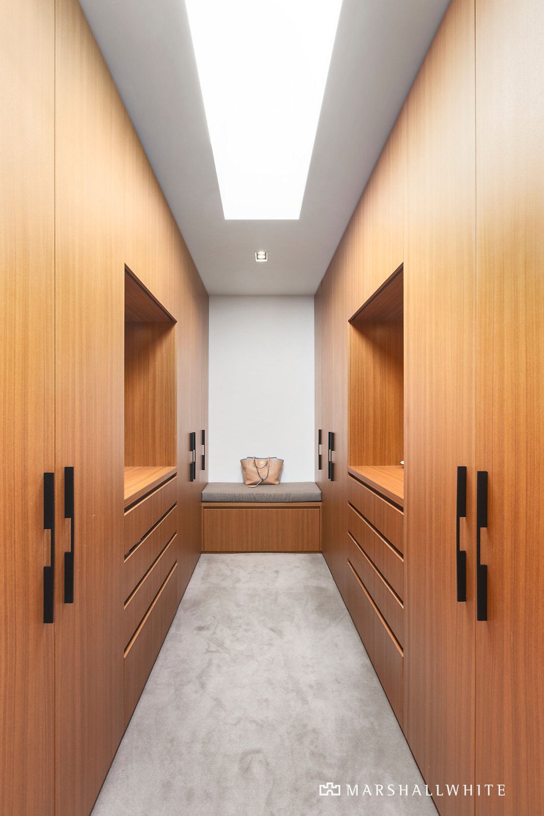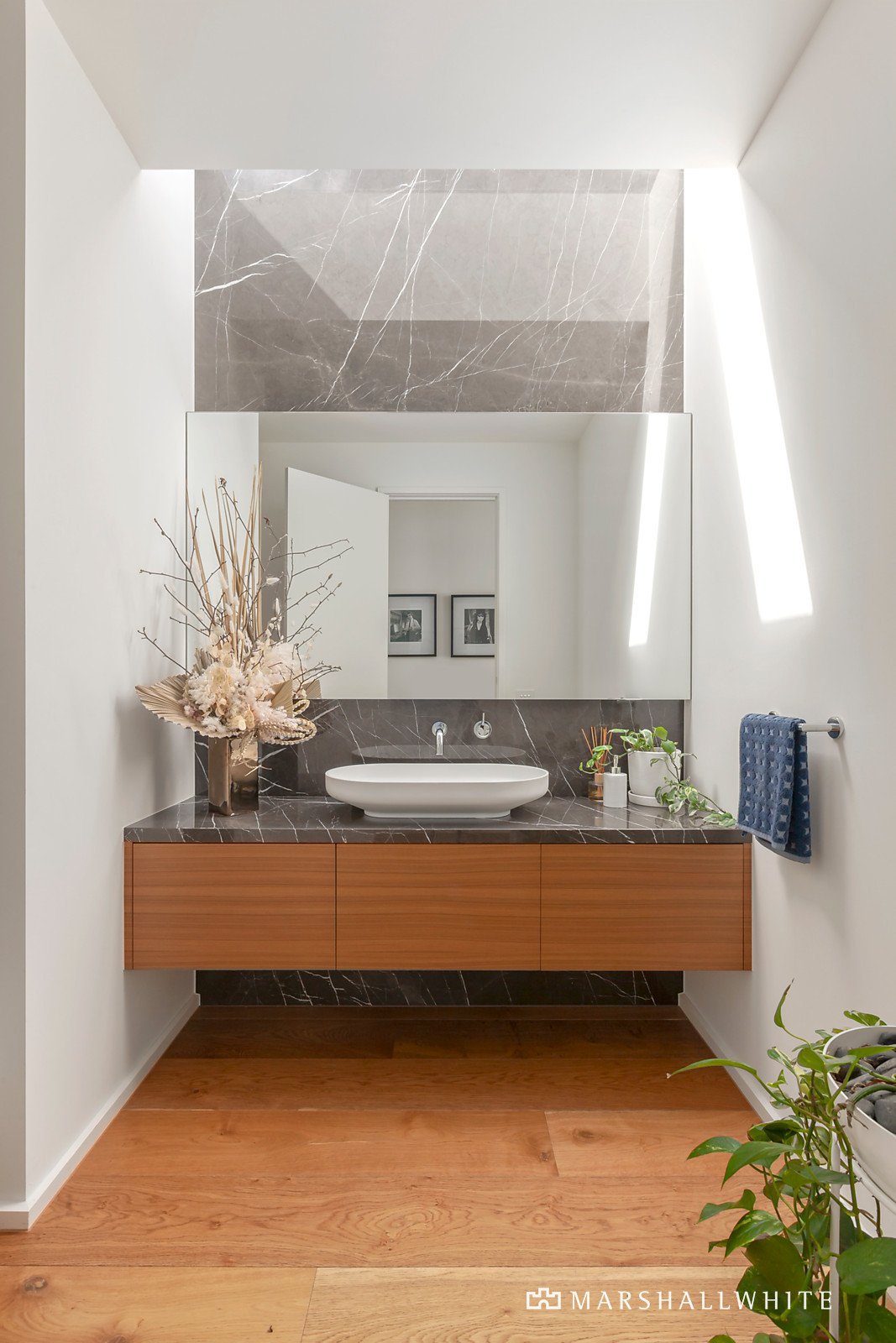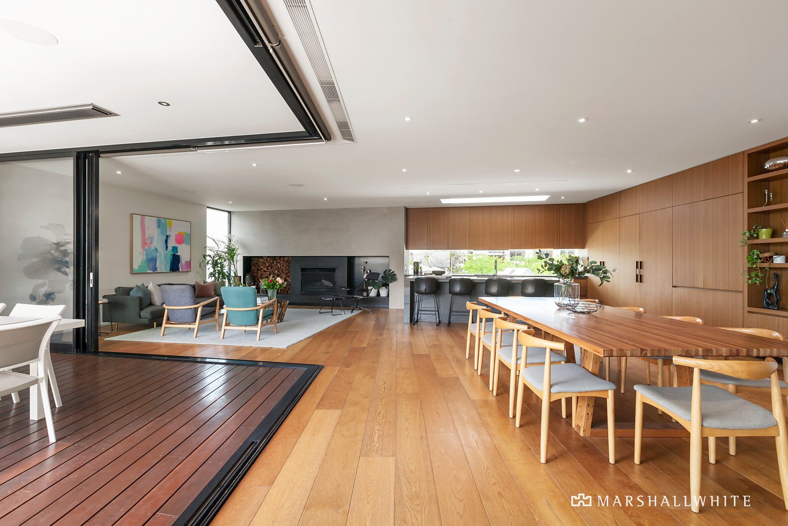 A modern facade of rendered blockwork and sawn cedar timber cladding sets the scene for the vast and luxurious interior that reveals itself. Cleverly combining timber and concrete plus large windows that provide uninterrupted bay and city views.