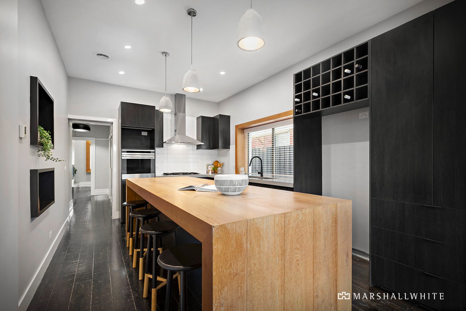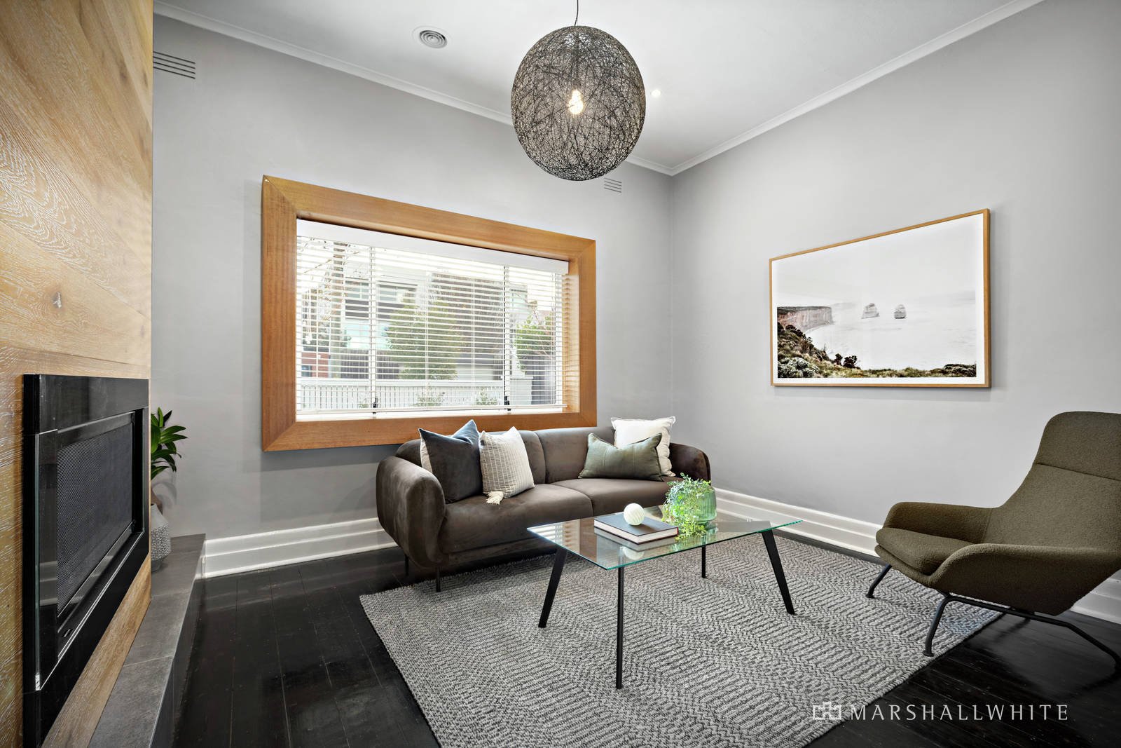 Appointed with stone benches, stainless steel appliances and a huge Oak island bench, the kitchen / meals is timelessly stylish, whilst a separate lounge / living has been superbly finished with a gas log fireplace set into an eye-catching Oak feature wall.