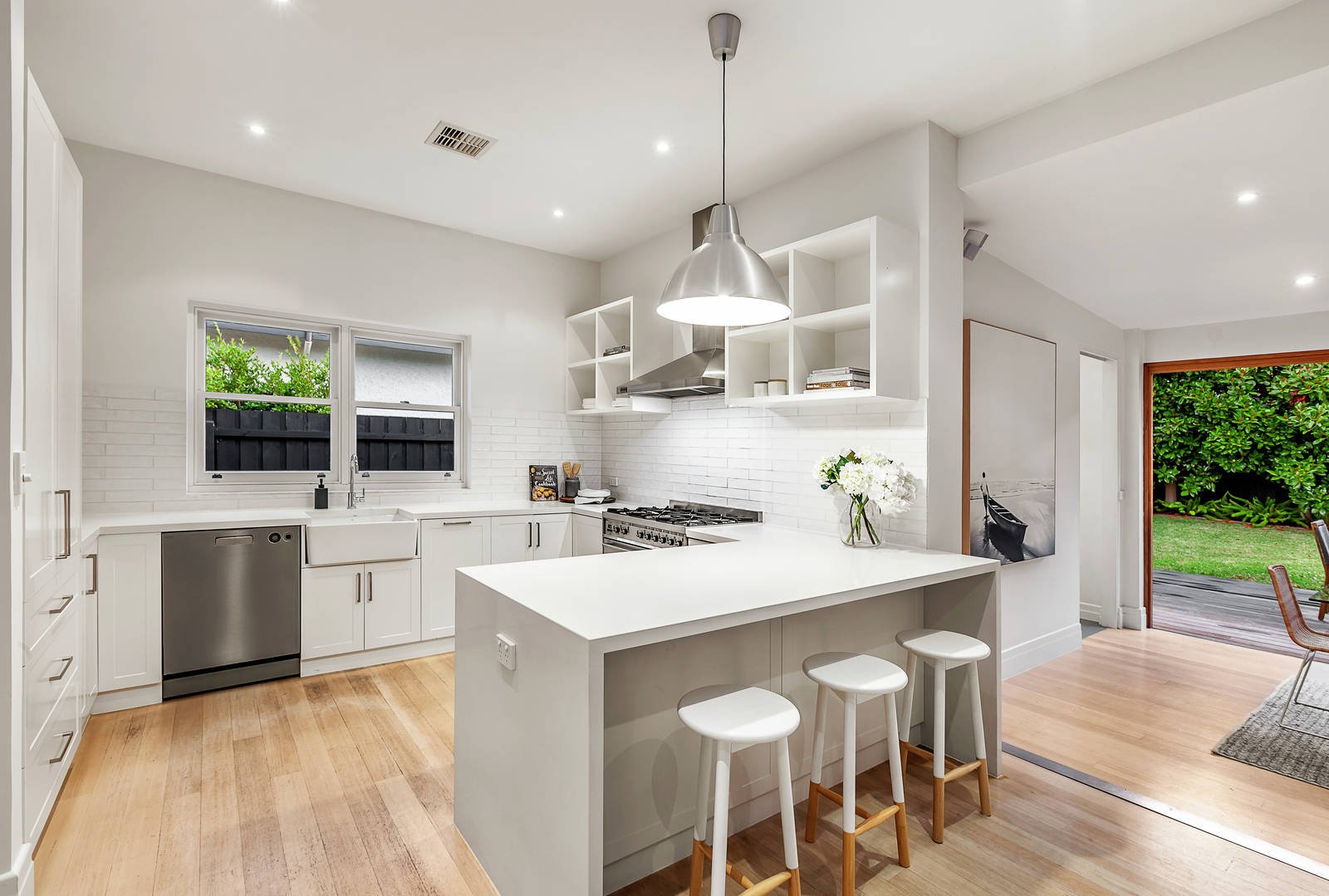 They say position is everything when buying real estate, and here is one of Brighton East's most secluded crescents in the heart of it all. A Californian Bungalow style residence in elegant garden setting provides endless entertaining opportunities within a spacious, updated features to move in and start enjoying. Prized family location only moments from Hampton St shops, Church St and Were St Village. Among quiet leafy surrounds this home has a seamless floor plan underscored by timber floorboards and ornate period detail throughout. Enter through the charming original front doors you'll find a wide open foyer converted with original features and a refined sitting room enjoying garden views through bay windows, connecting to an expansive and light filled formal dining room with an open fireplace part of the original house. Soaring ceilings accommodate incredible northerly light through the entertaining domain, featuring a Hampton inspired kitchen with Caesarstone bench tops, top of the range stainless steel appliances and breakfast bar overlooking a second lounge area, complete with bi folding doors that open out to alfresco decking and a private back garden lined with incredible decade old, manicured Magnolia trees.