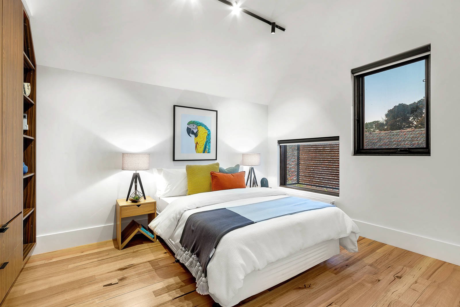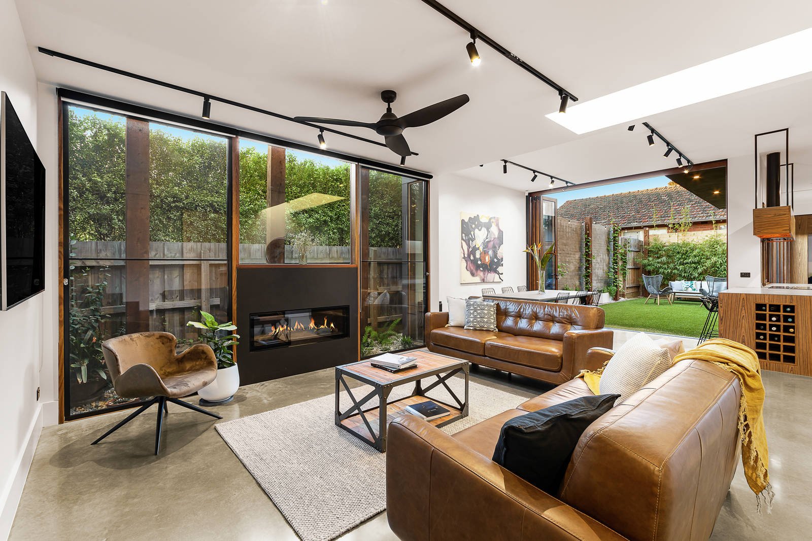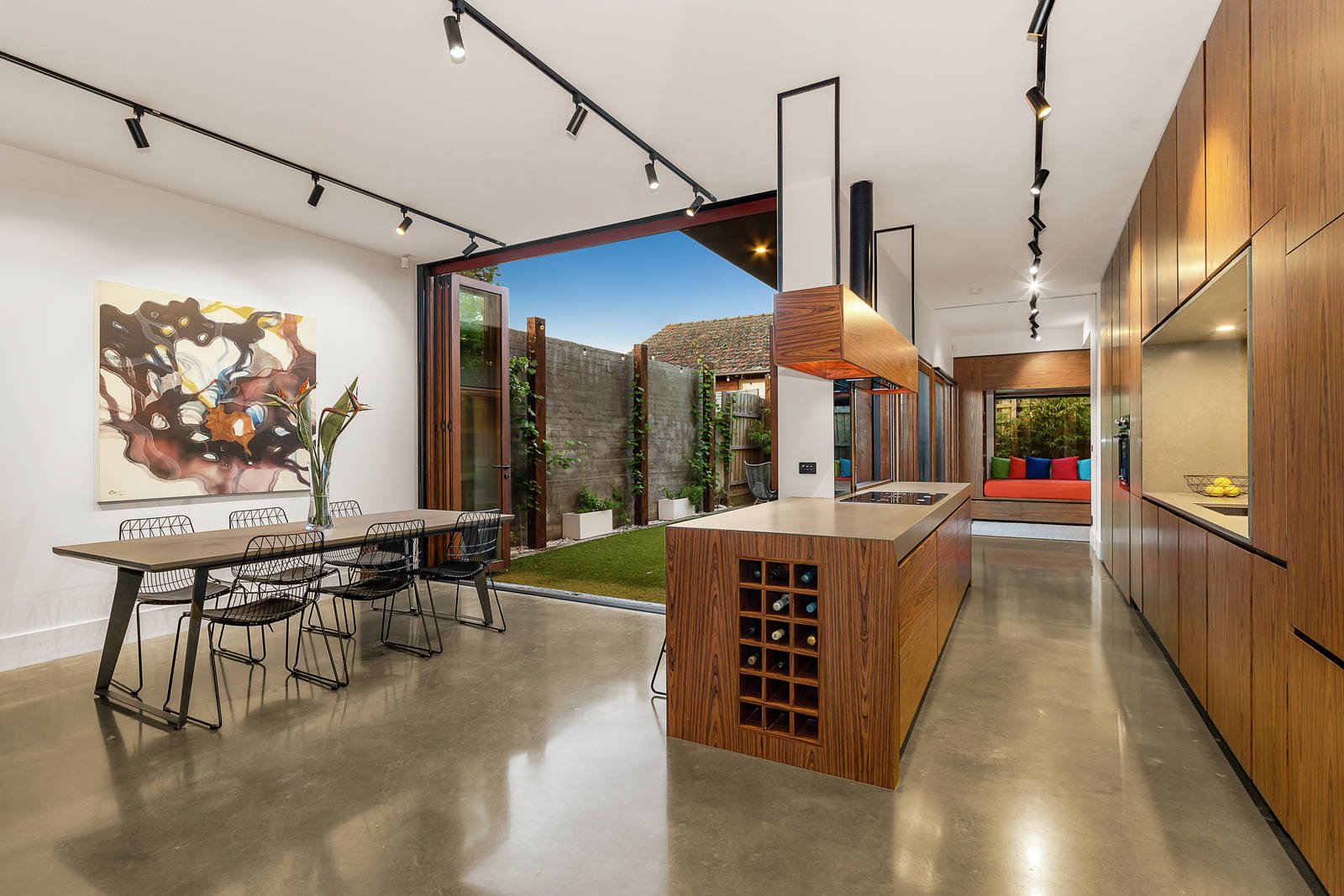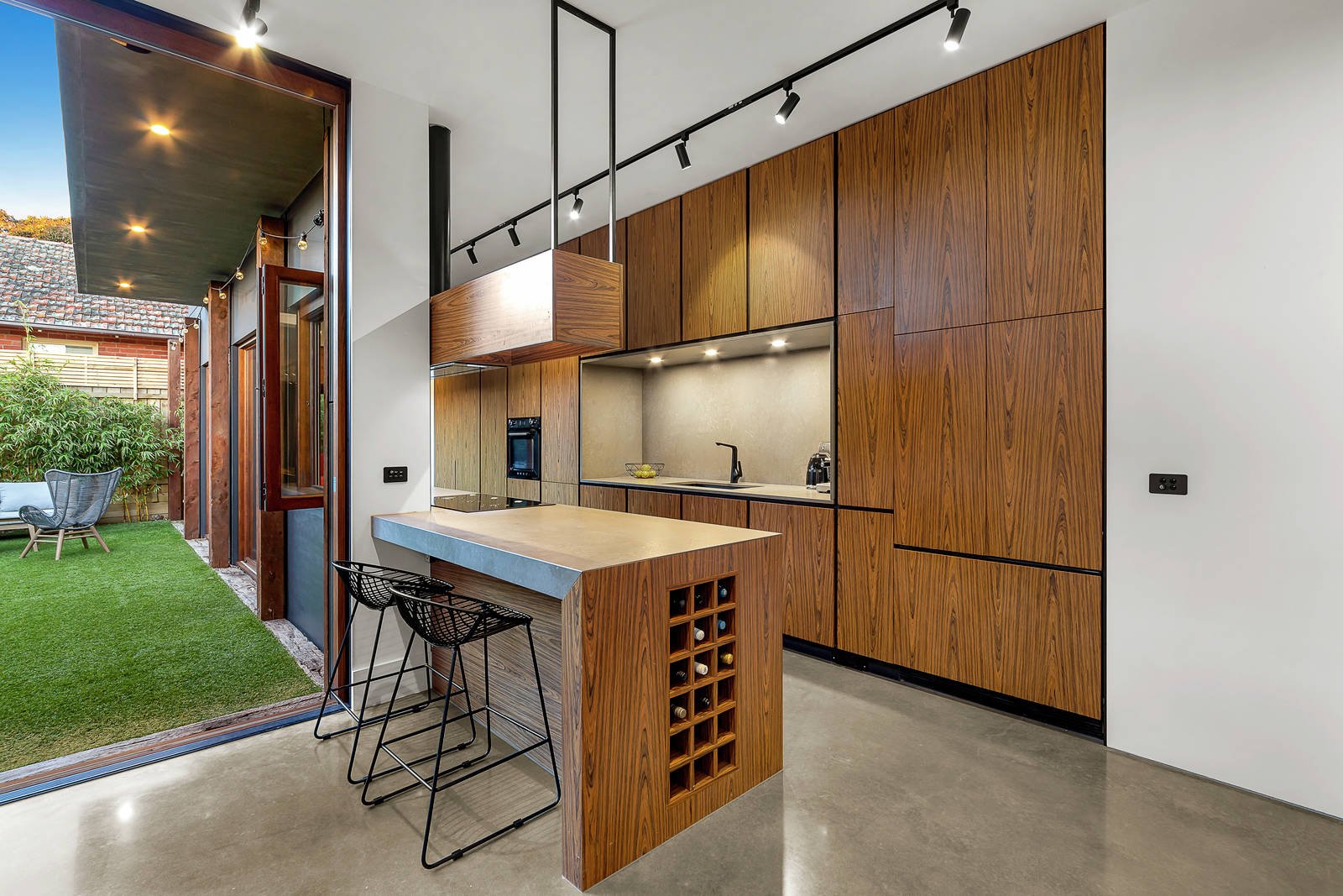 Winner of the 2019 HIA Victoria 'Townhouse of the Year' awarded to the builder Never Stop Group for craftsmanship and design, Finalist of the 2020 HIA Australia 'Townhouse of the Year' and Finalist of the 2020 MBA Victoria 'Best Custom Home'. This three-bedroom home merges form and function to be the highest quality townhouse where streamlined luxury and easy-care outdoor living are metres from shops, cafes and train station. The focus on quality shows in every room, including the main living zone with three-metre ceilings, hydronic slab heating, full-height double-glazed bifold doors with concealed insect screening, and a gas log fire with customized steel hearth. Relax in the reading room/second living zone, where a huge window seat, custom-designed bookshelves and a hidden sliding door create a quiet retreat. Love the gourmet kitchen's clever black glass gas cooktop with retractable burners, Smeg Victoria pyrolytic oven, glass-fronted extractor fan, pullout pantries and Essastone Concreto benches. Each bedroom impresses with towering 4.5-metre vaulted ceilings, and the master luxuriously appointed with a light-filled ensuite featuring an exquisite Pietra Bianca bath. There's a study zone, an abundance of natural light, cross-ventilation, custom-made storage solutions, energy-efficient Australian hardwood timber windows, kitchen servery, and high-spec LED track and pendant lighting. There's so much more to admire, including the north-facing garden with grapevines and artificial grass, and the ultra-convenient address.
