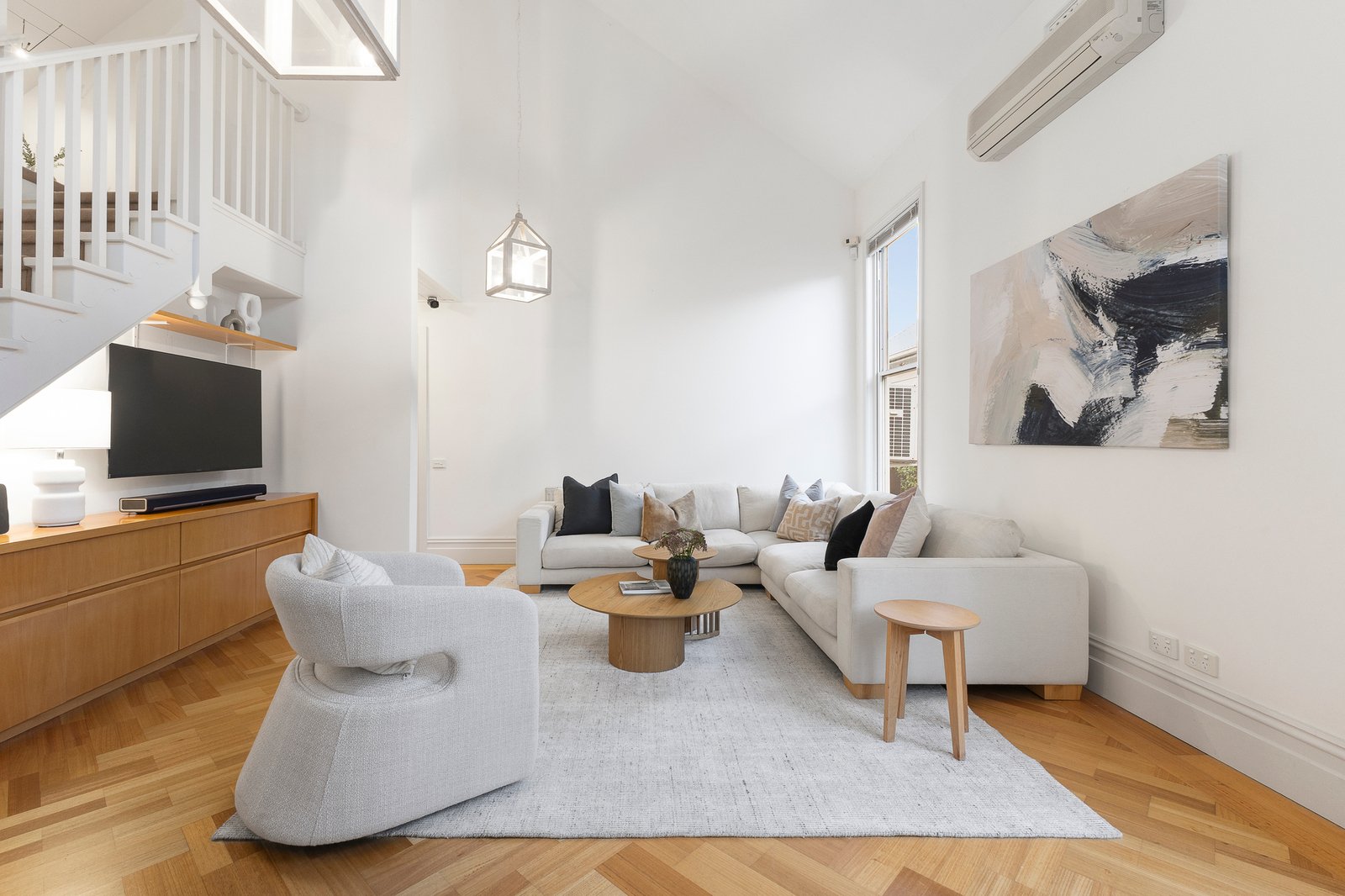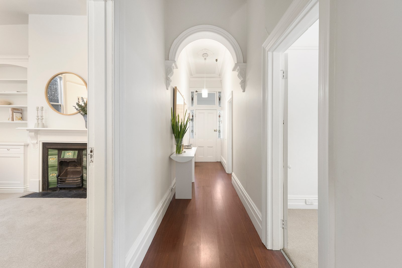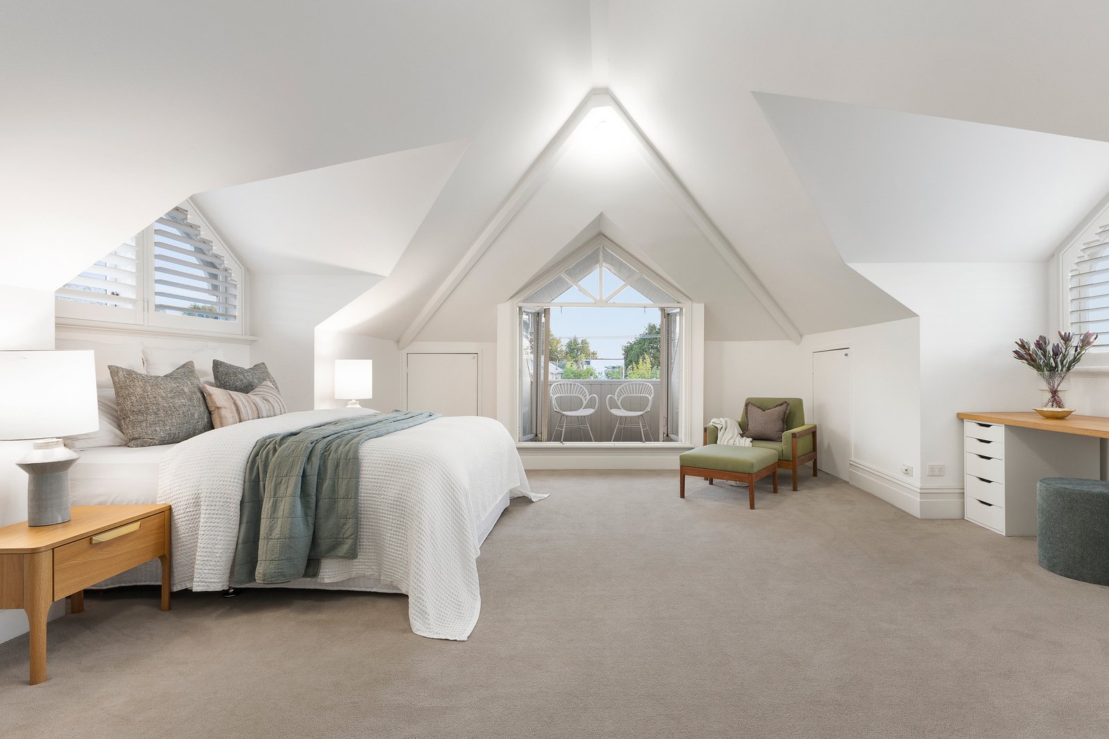An attractive era façade introduces the interior featuring an arched hallway flanked by a formal sitting room, three downstairs bedrooms and a stylish family bathroom, laundry/WC. Through to the rear extension with an upper-level retreat/study area and main bedroom with a private balcony and tree top views to the City skyline. Above a generous, north-facing family living and dining area with herringbone parquetry floors, soaring vaulted ceiling and tall windows incorporating a well-appointed kitchen with a walk-in pantry and premium quality appliances. Flowing to a paved alfresco dining and entertaining area and an external studio, home office or retreat in a private leafy garden – ideal for relaxed entertaining with family or friends. Other features include plantation shutters, hydronic heating, R/C air-conditioners, OFPs, excellent internal storage including roof and off-street parking.