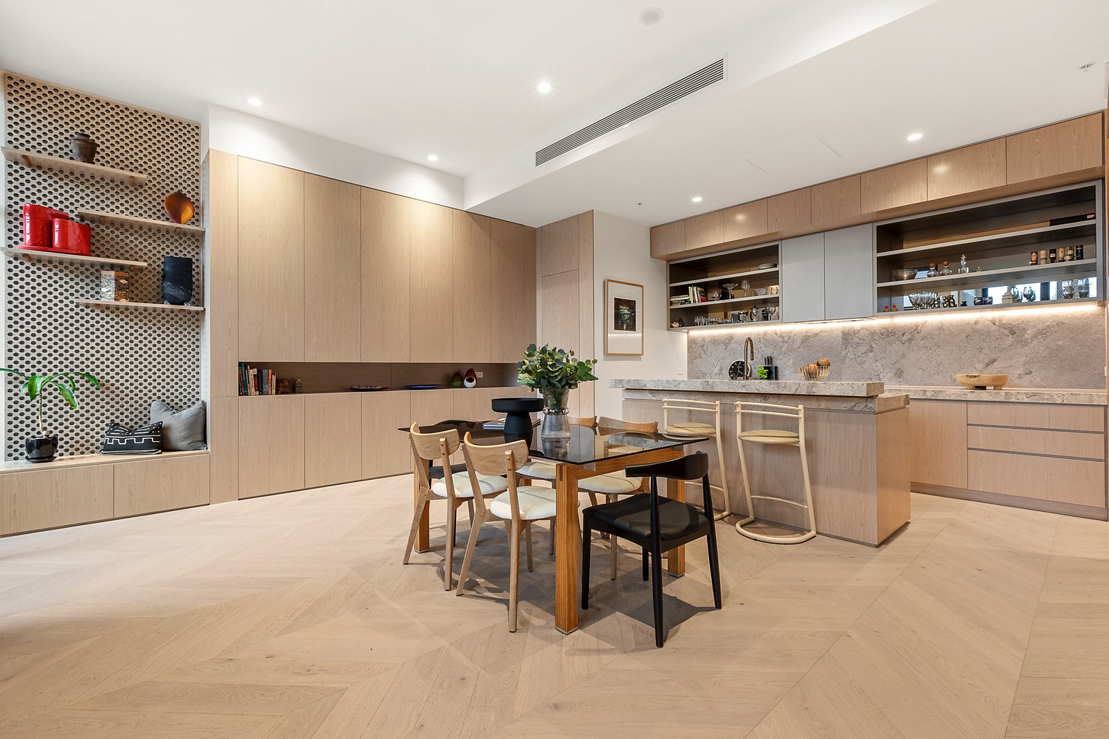 A 6.5 star energy rating and modern conveniences throughout such as zoned reverse cycle heating/cooling, double glazed windows, powder room, video intercom, security system, laundry, split system and internal access to secure double garage complete the home. This immaculate town residence also enjoys access to a business centre, swimming pool, gymnasium, cinema and restaurants including rooftop pool and bar. An esteemed lifestyle location places JL Murphy Reserve, Port Melbourne Primary School, buses and freeway access within close proximity.