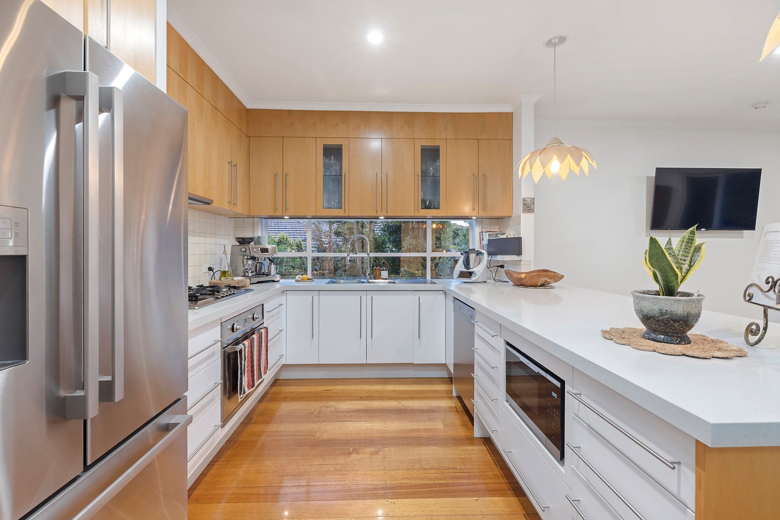 Set in the prized Frankston High School zone on a large 996sqm (approx.) allotment, the home's mid-century beginnings have been superbly expanded upon with a welcoming formal lounge with polished hardwood floors, detailed cornices and a pair of sliding etched-glass doors.