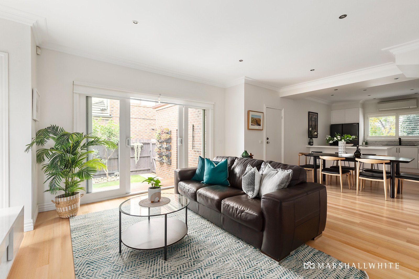 A double height entrance hall featuring timber floors introduces a generous sitting room with a gas fire and a spacious home office or 4th bedroom. Northern light streams through the expansive open plan living and dining room with a sleek gourmet kitchen appointed with Miele/Bosch appliances and stone benches. Glass sliders open the living spaces to a gorgeous private landscaped north-facing courtyard surrounded by Manchurian Pears and citrus trees. Upstairs, the main bedroom with stunning en suite and fitted robes is accompanied by two additional bedrooms with robes and a stylish bathroom.
