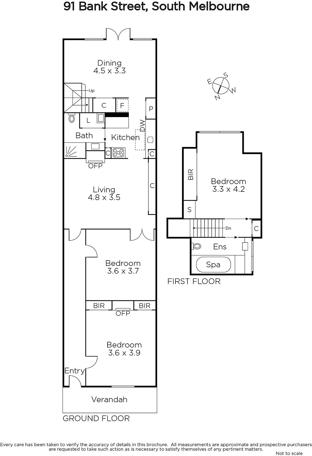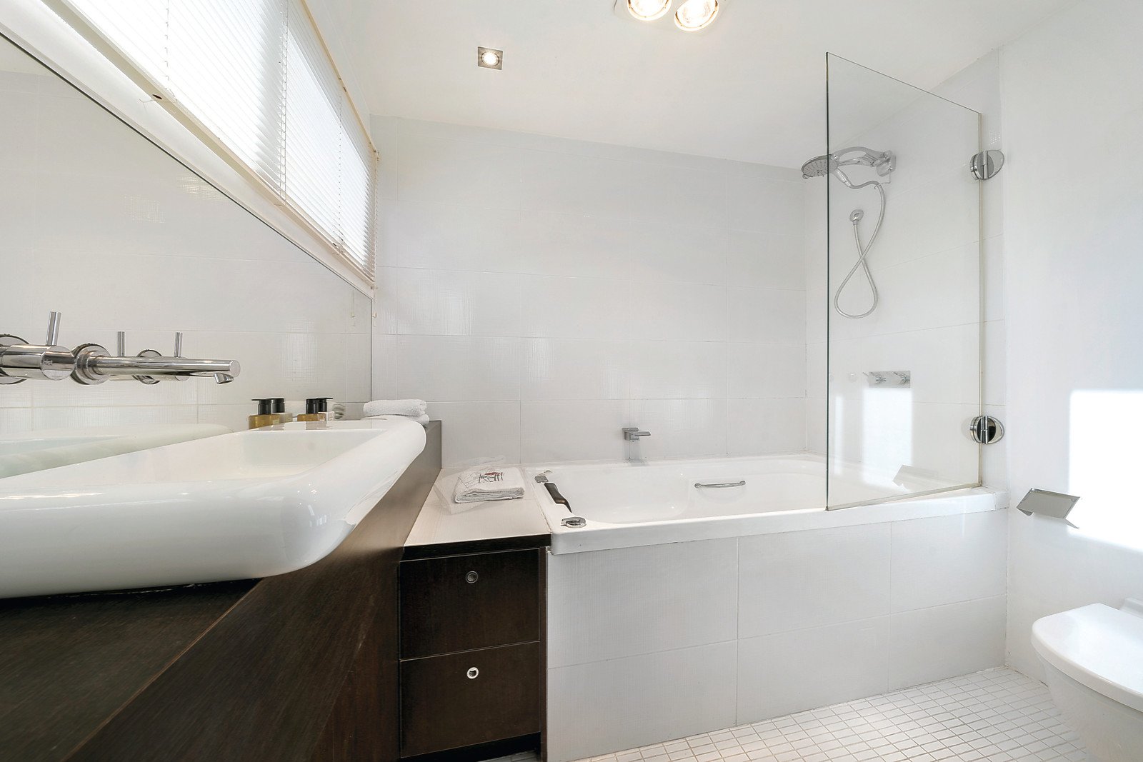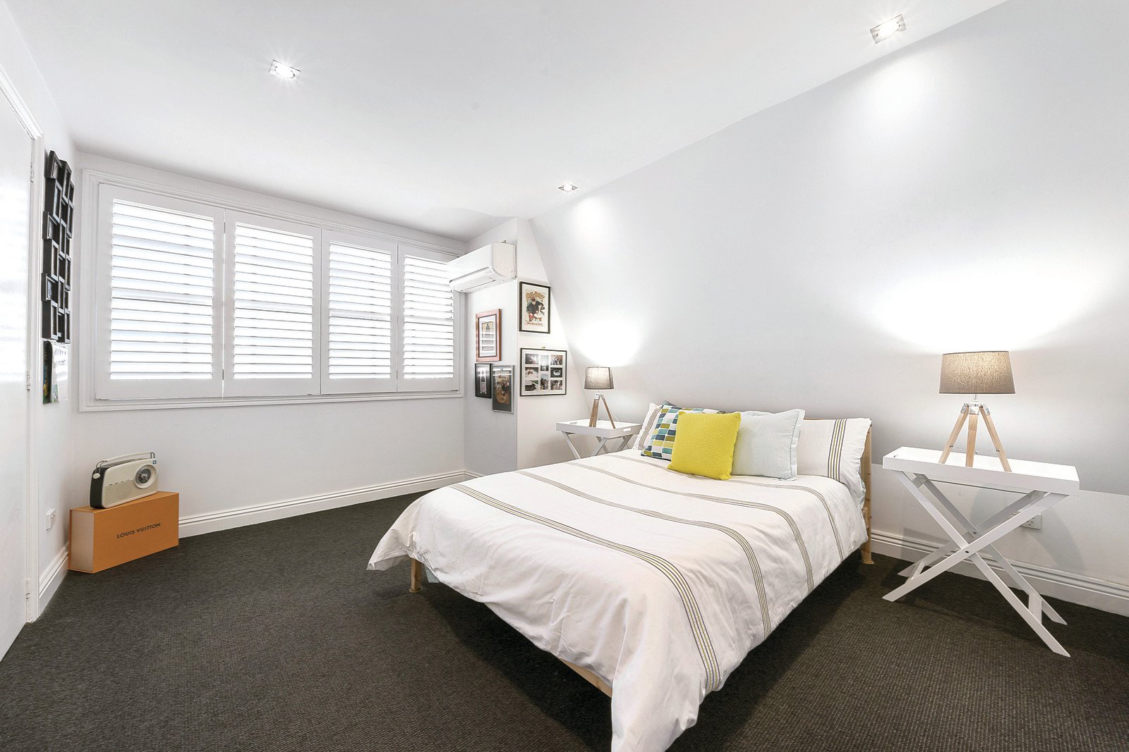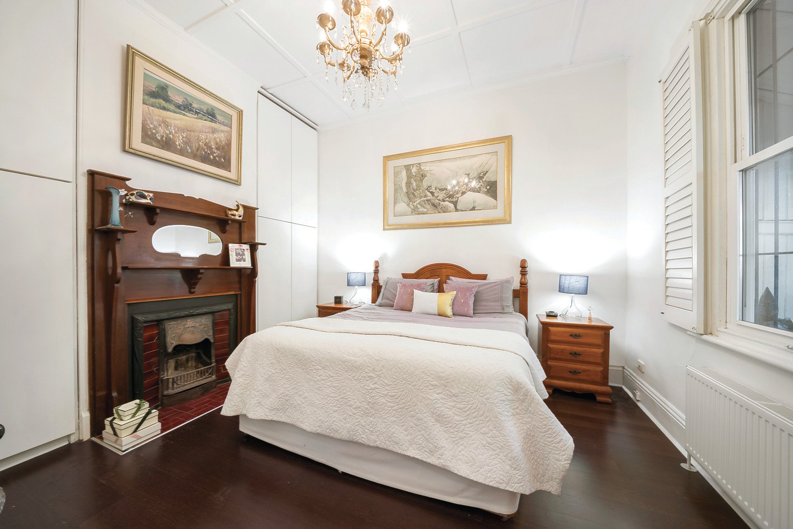 Dark timber floors add a contemporary touch to the original arched hallway, generous living room with open fireplace, a superbly appointed modern stainless steel kitchen with 90cm Ilve oven and separate light-filled dining room. French doors open the dining area to a private leafy courtyard with pedestrian access to a rear lane. A gorgeous double bedroom with open fireplace and built in robe, second double bedroom and ultra stylish bathroom are downstairs while the beautiful main bedroom with built in robe and chic en-suite with spa-bath enjoy upstairs serenity.