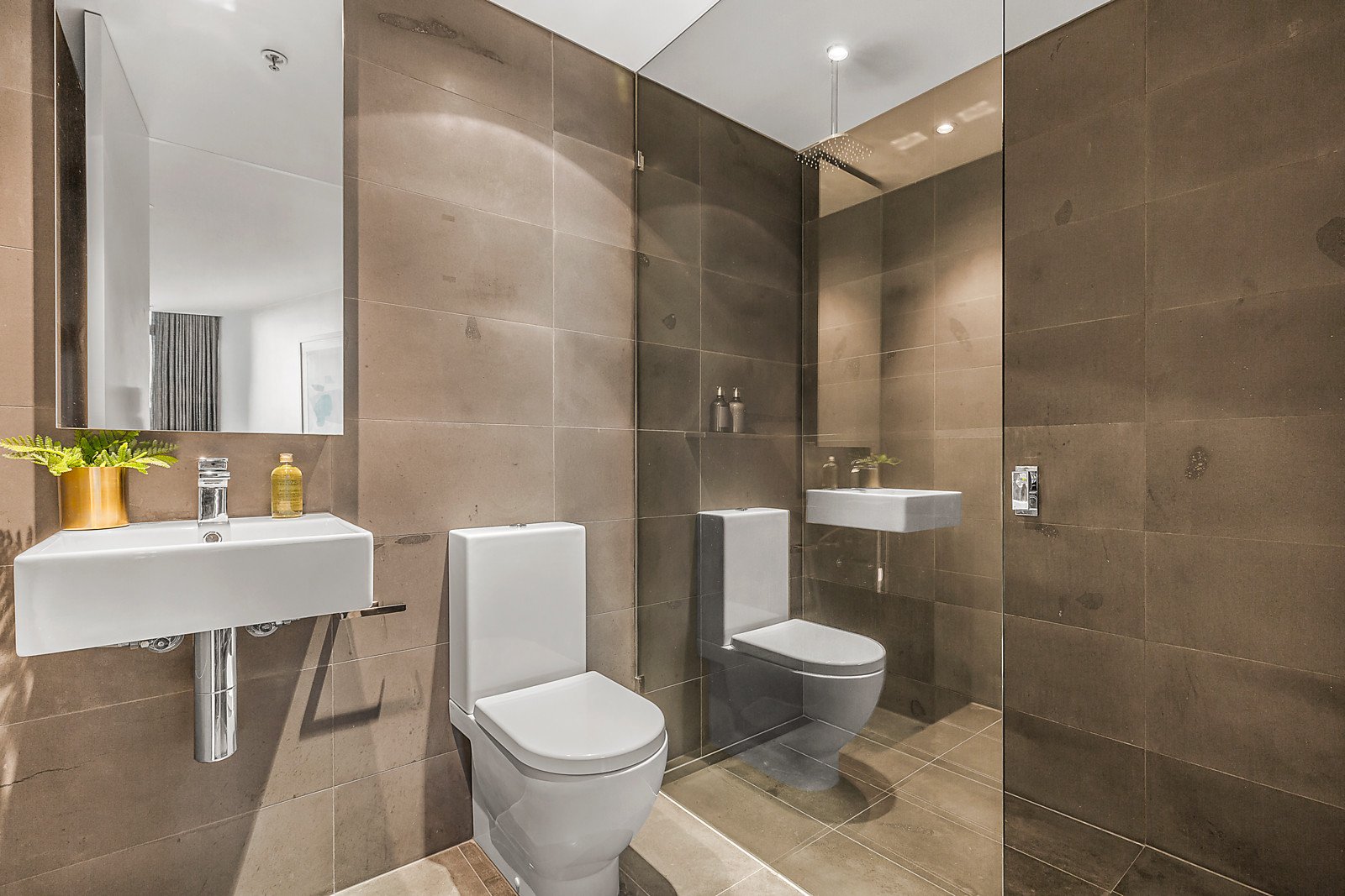 Sparing no expense, the kitchen is Miele-equipped with an integrated refrigerator and luxury stone benches - a theme that extends to both the main bathroom and ensuite which are fully-tiled from floor to ceiling - as it flows through open-plan living to a balcony with dynamic urban views. With an emphasis on quality, the home also offers a breath-taking rooftop communal swimming pool, a movie room, secure video entry, basement parking, concierge, elevator access and air conditioning.