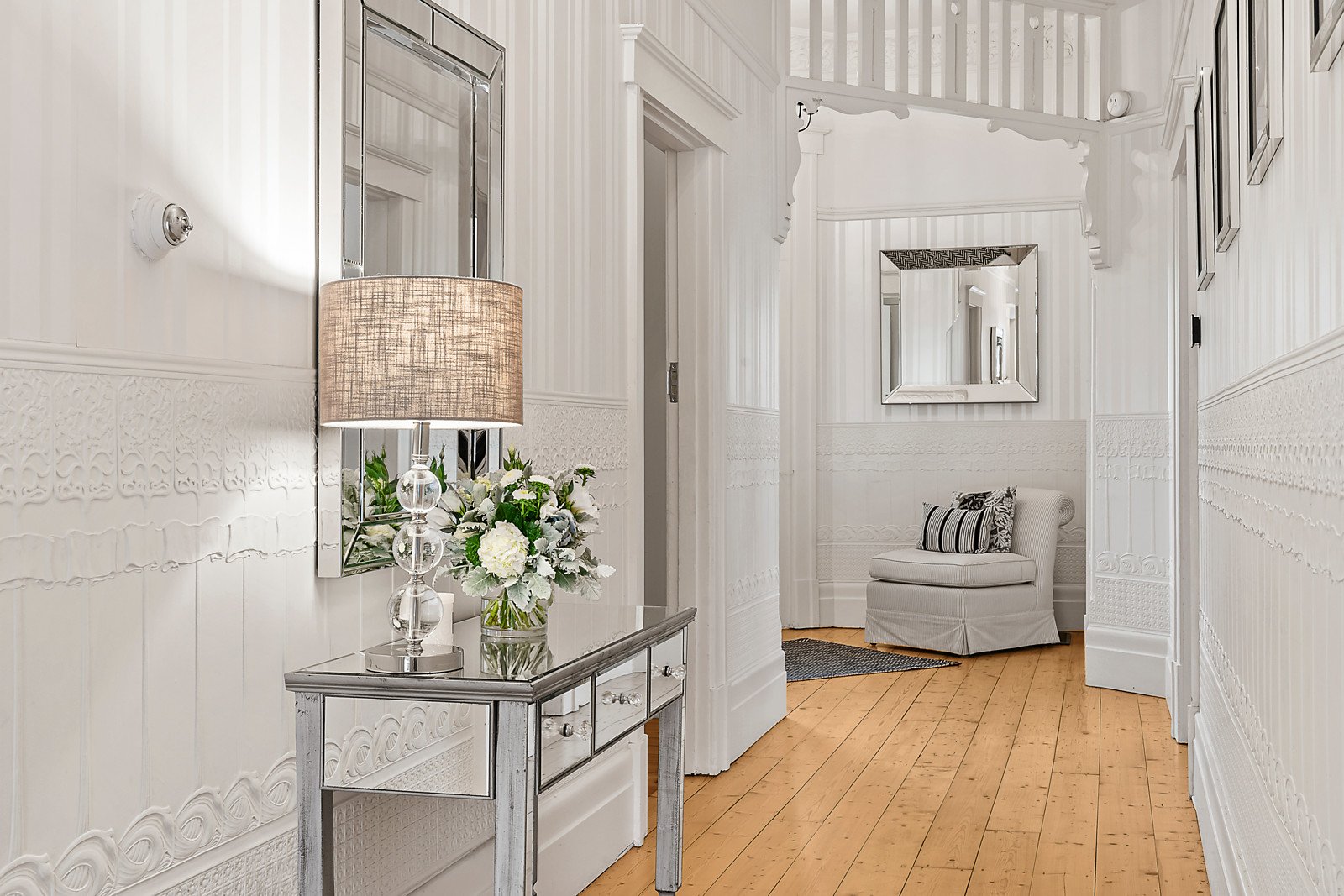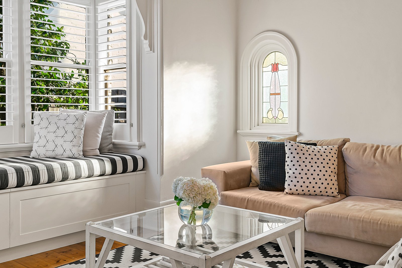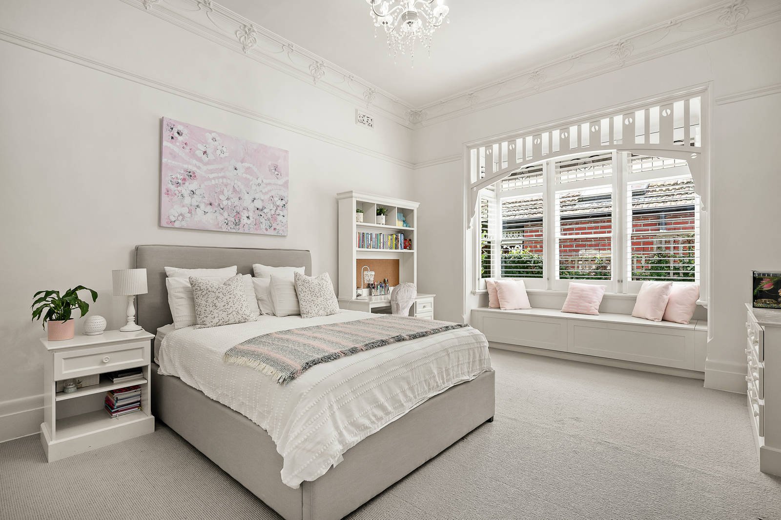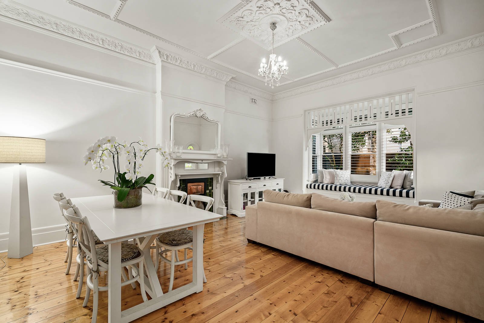In an elevated position well back from the street, the tessellated verandah reveals a wide entrance hall featuring Baltic pine floors, ornate ceilings and decorative dados. The hall flows through to a beautiful living and dining room with an open fire and to a well-appointed modern kitchen with 90cm Smeg oven leading out to the private northeast garden with paved terrace and a double garage accessed via rear right of way. The gorgeous main bedroom with open fire and window seat complements three additional bedrooms with robes and a stylish bathroom.