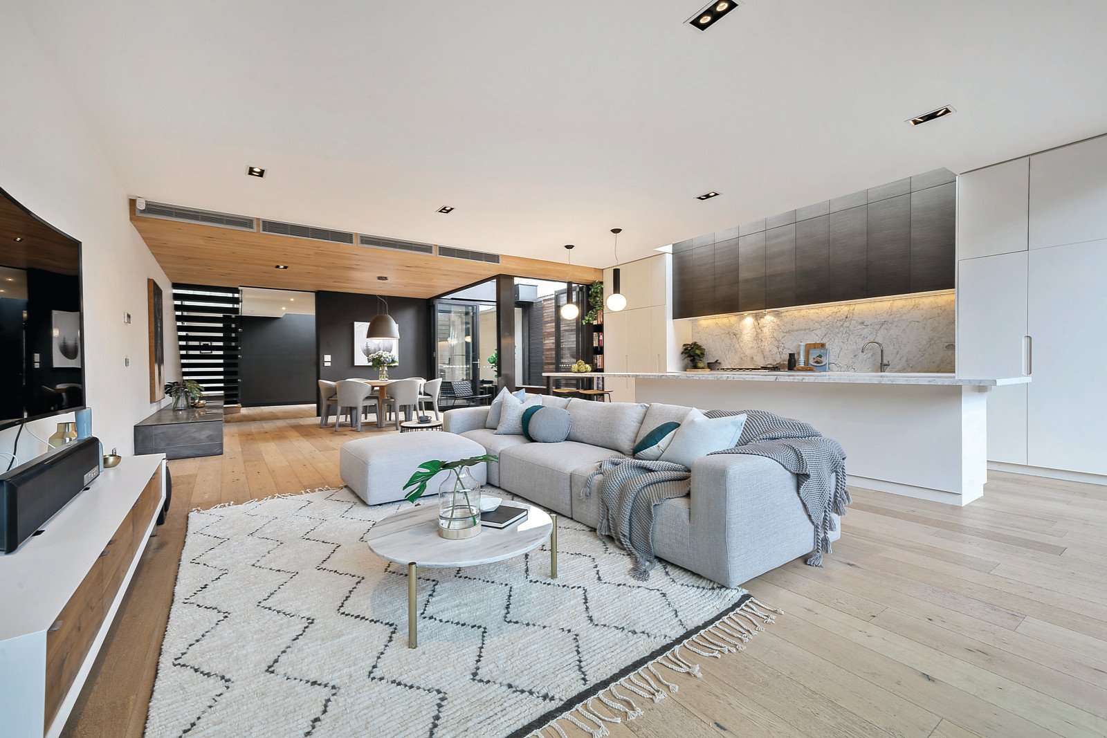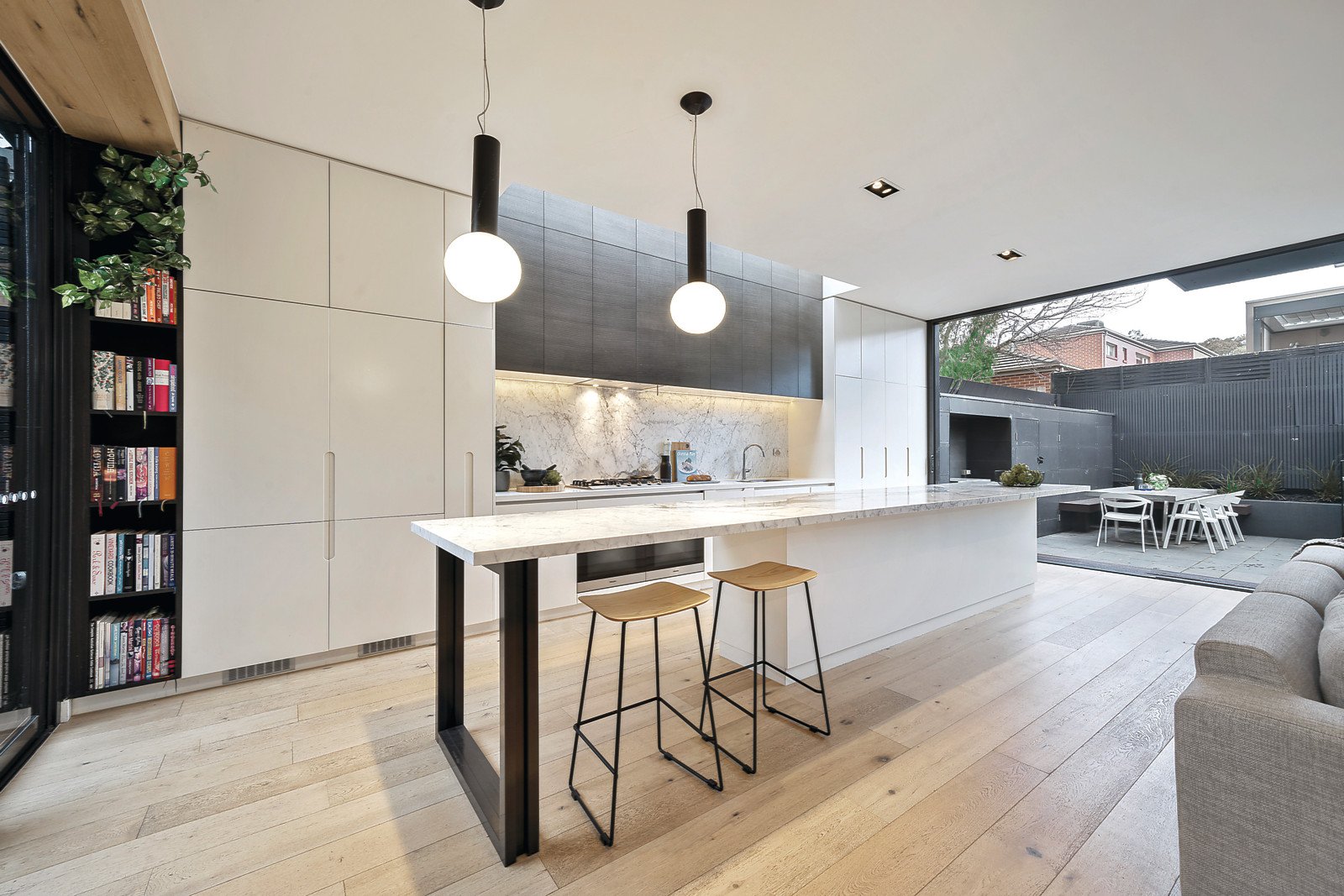 Cutting-edge design delivers a superb way of living opposite Boss James Reserve, with architectural innovation at the heart of every room. Wake up to panoramic views, appreciate the luxury of large living zones, and when summer comes there's a plunge pool and a seamless connection to contemporary outdoor living. KG Architecture has created a three-bedroom and study oversized townhouse with a seven-star energy rating and magnificent features. Exacting planning shows in the large family room with adjoining atrium room, a lounge full of light and a two-way gas fireplace, and the luxury of a Calacatta marble kitchen with expansive bench space and pool views. All the big design names are here, with Artimede lighting, Rogerseller bathrooms, two pyrolitic Miele ovens, and an Electrolux barbecue. Inspired use of timber reveals smoked oak floors, feature ceiling and a spotted gum façade, adding to the luxe look of this standout home. The fine design continues upstairs with a third living area and a generous main bedroom with those wonderful views, custom-designed joinery and a sumptuous ensuite. State-of-the-art fitout put this home into the prestige category. There's multi-zoned slot heating and air conditioning, powder room, cantilevered stairway, soft-touch cabinetry and integrated fridges and freezers in the gourmet kitchen, double-glazing on all doors and windows, and security entry. Central location near schools, supermarket, cafes and Thomas Street Reserve.