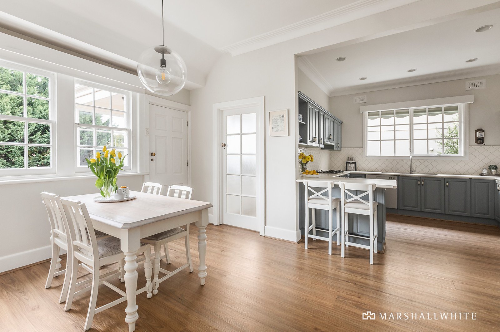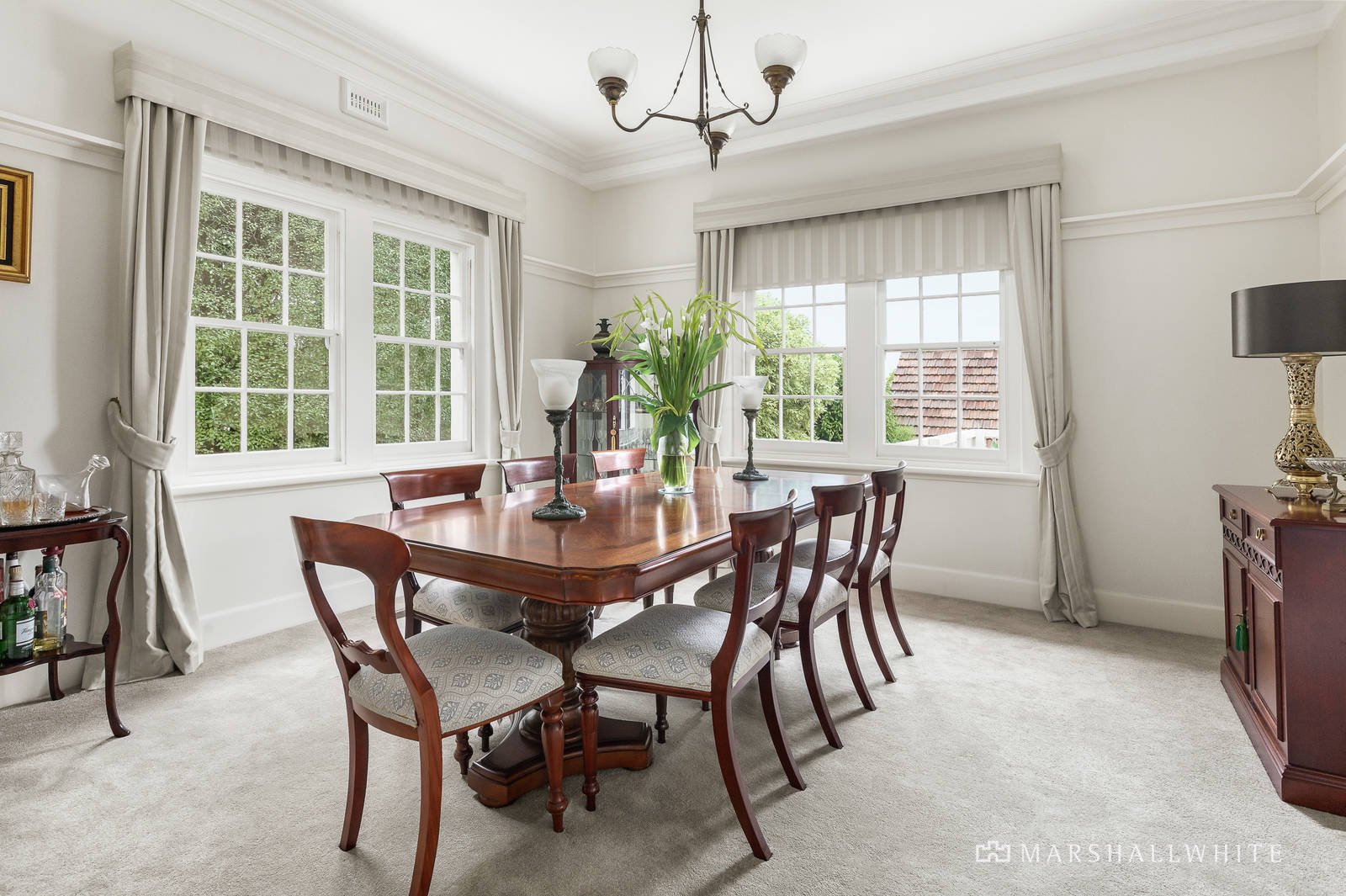 Impeccably maintained, this tastefully updated 1930's solid brick family home oozes elegance and timeless charm. Set amid pretty gardens, it comprises downstairs: beautiful entrance hall, downstairs bedroom with adjacent bathroom, elegant formal living room with open fireplace, formal dining room, renovated kitchen - ILVE and Asko appliances - with adjacent meals area leading out to a beautiful entertaining deck and the rear garden.