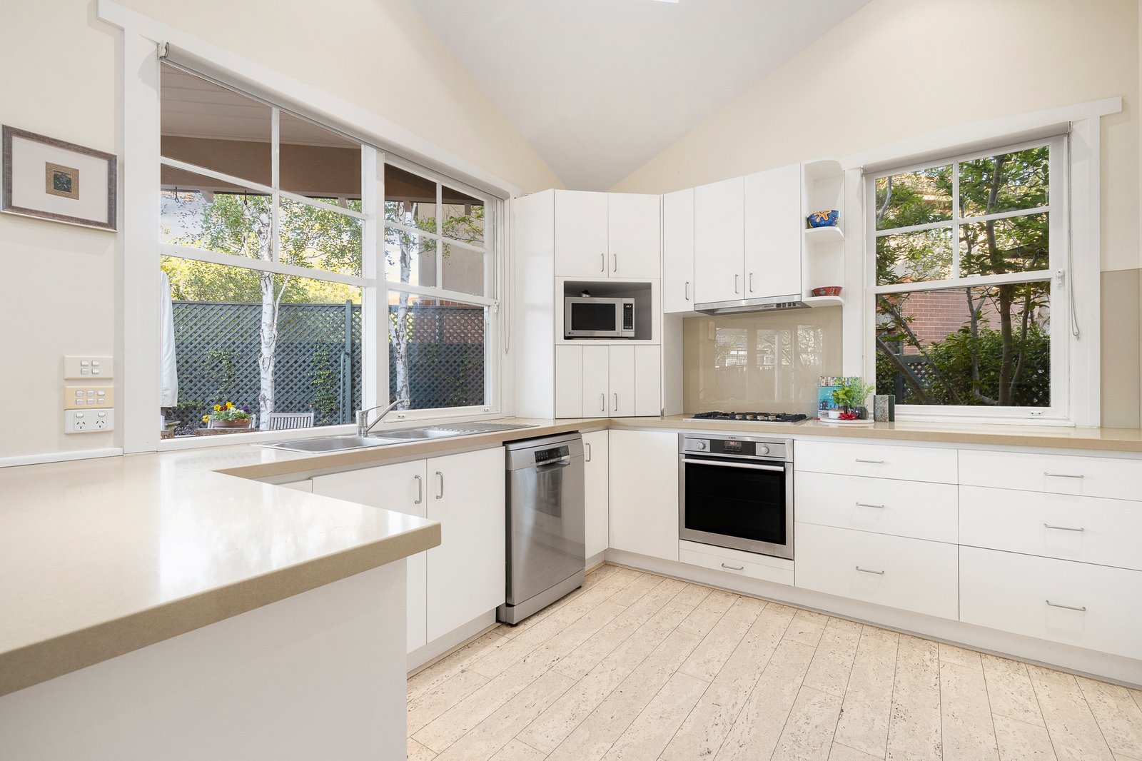 Introducing streams of natural light from all directions and framing verdant outlooks at every opportunity, the home also features a separate lounge room, built-in robes or cabinetry in each bedroom, a pair of contemporary bathrooms and a powder room, while further highlights include driveway parking for two vehicles, ducted heating, air conditioning and volumes of storage that includes plenty of cupboards, under the stairs, in the roofline and the laundry.
