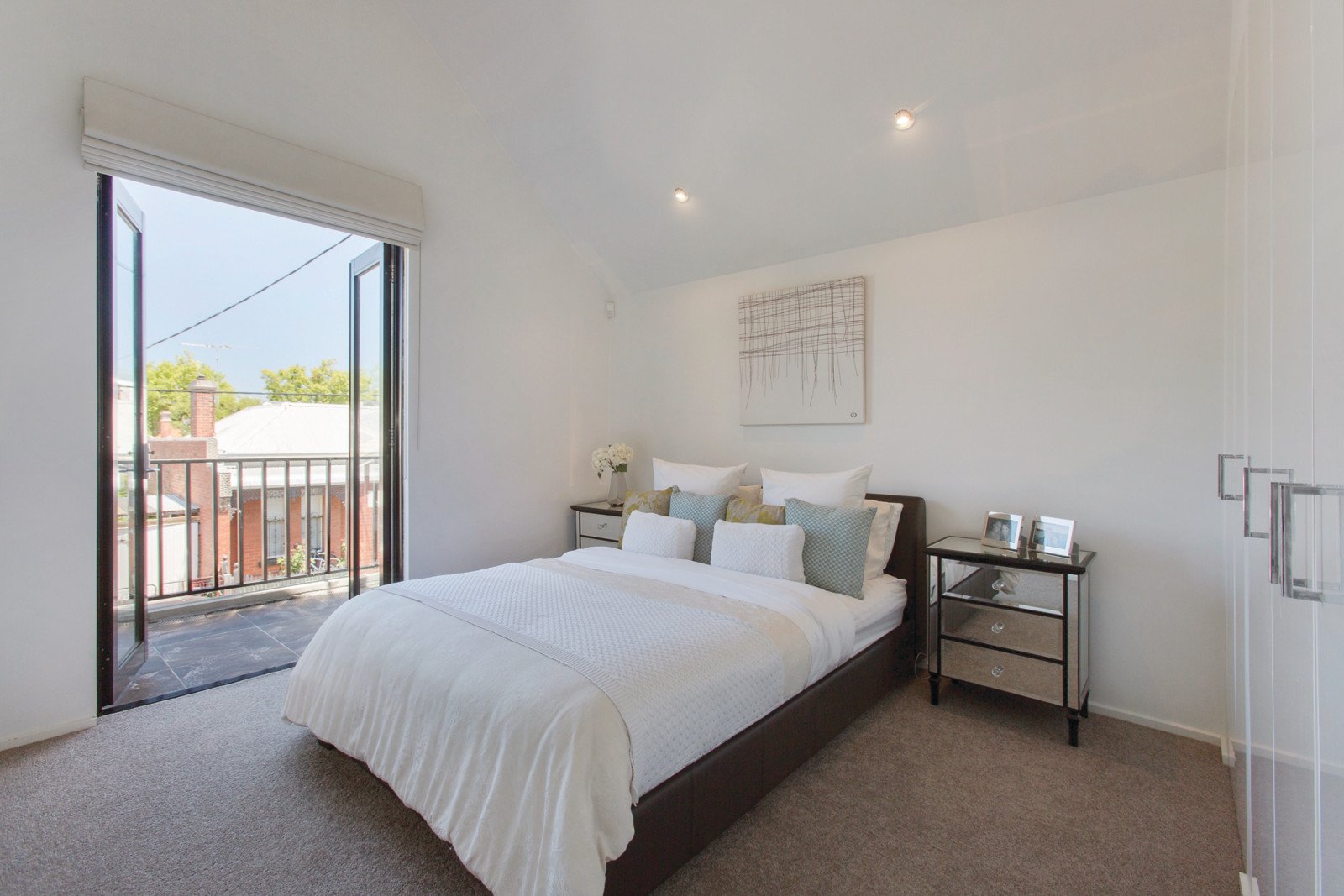 Enviably positioned on a quiet street moments from the beachfront, this outstanding home's fresh, stylish spaces capitalise on its superb location close to Armstrong Street cafes, restaurants and public transport. An inviting floor plan delivers open lounge/dining and galley-style kitchen, enhanced by Miele appliances and stone benchtops, with bi-fold doors opening to an entertainer's patio offering inbuilt seating and secure side laneway access. A secluded retreat on the upper level comprises two large BIR bedrooms emphasised by dramatic vaulted ceilings with main offering a spacious balcony with views over an attractive streetscape, a large vaulted ceiling bathroom with spa bath and separate shower. With superb touches including cleverly integrated speaker system and split system heating/cooling throughout, excellent storage and undercover off street parking, this elegant, contemporary property ensures outstanding lifestyle satisfaction in a prime pocket of Middle Park.