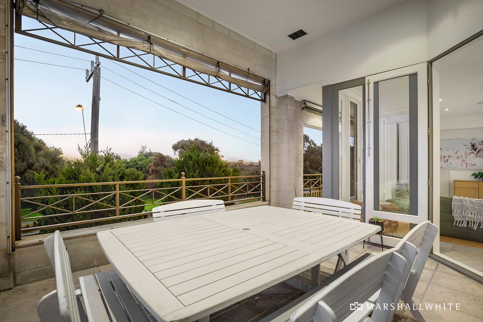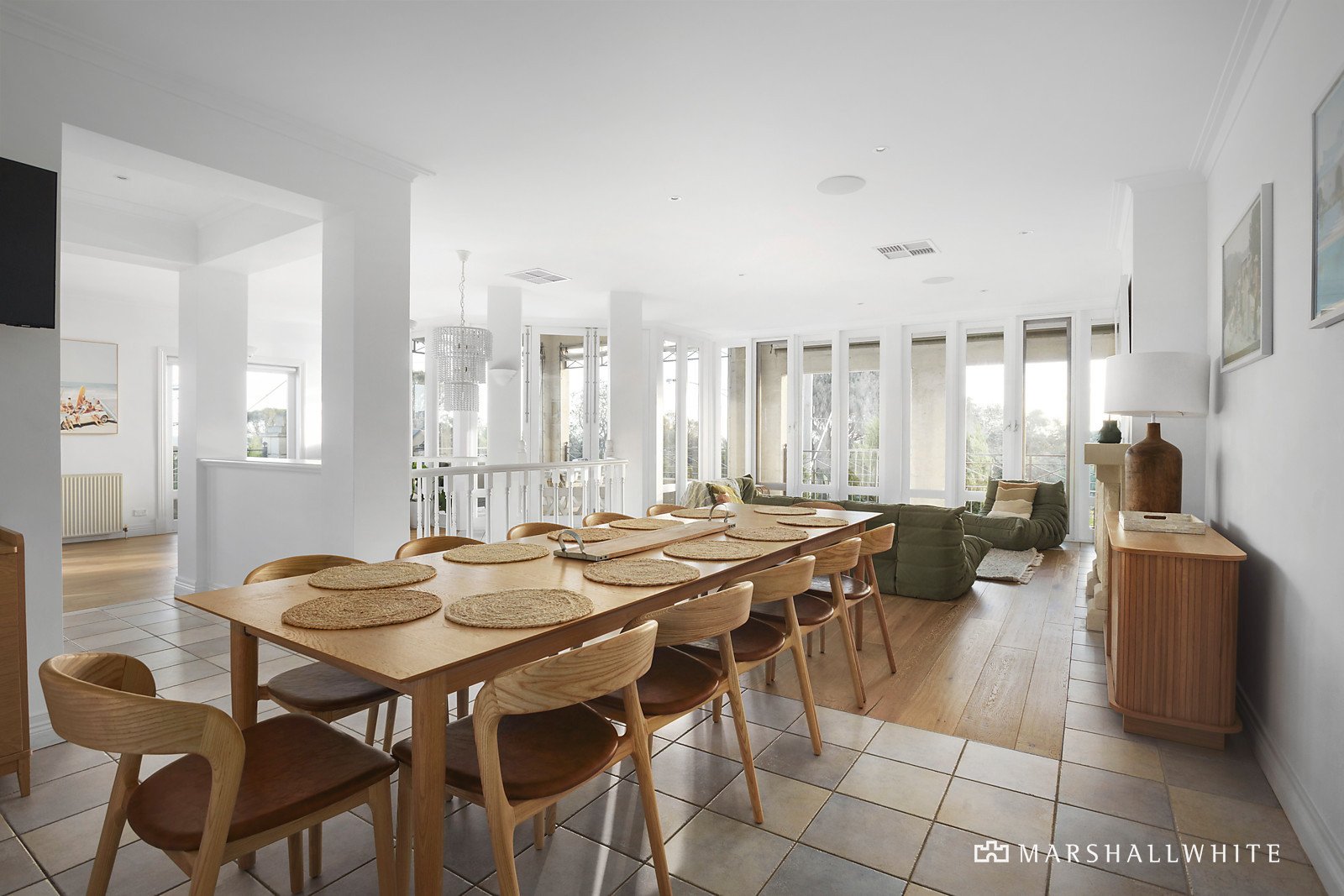 Bask in glorious waterfront vistas as the sun sets over Port Phillip Bay from the eyrie-like upper level of this captivating, landmark Sandringham home, designed for impressive entertaining and relaxed family living, with the best of Bayside's prized lifestyle amenities right on your doorstep.