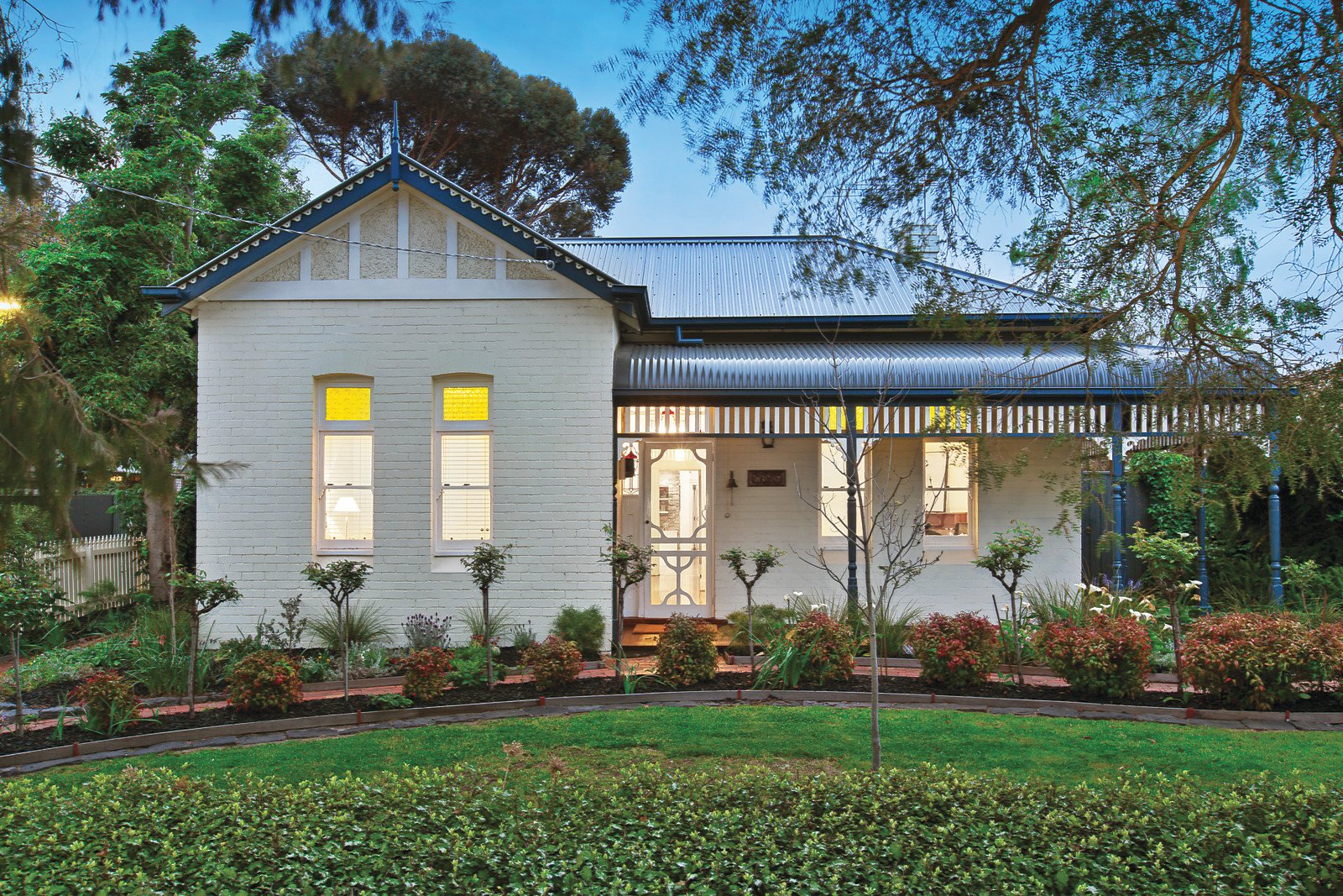 A charming Lichgate, picket fence and pretty front garden, with a line of Iceberg roses, introduces this gracious Edwardian brick family residence which boasts a prized corner location in the leafy English Counties precinct, renowned for its classic period homes. The home sympathetically blends its period attributes including bullnose return verandah, coloured leadlight glass and ceiling roses with rear contemporary family living areas.