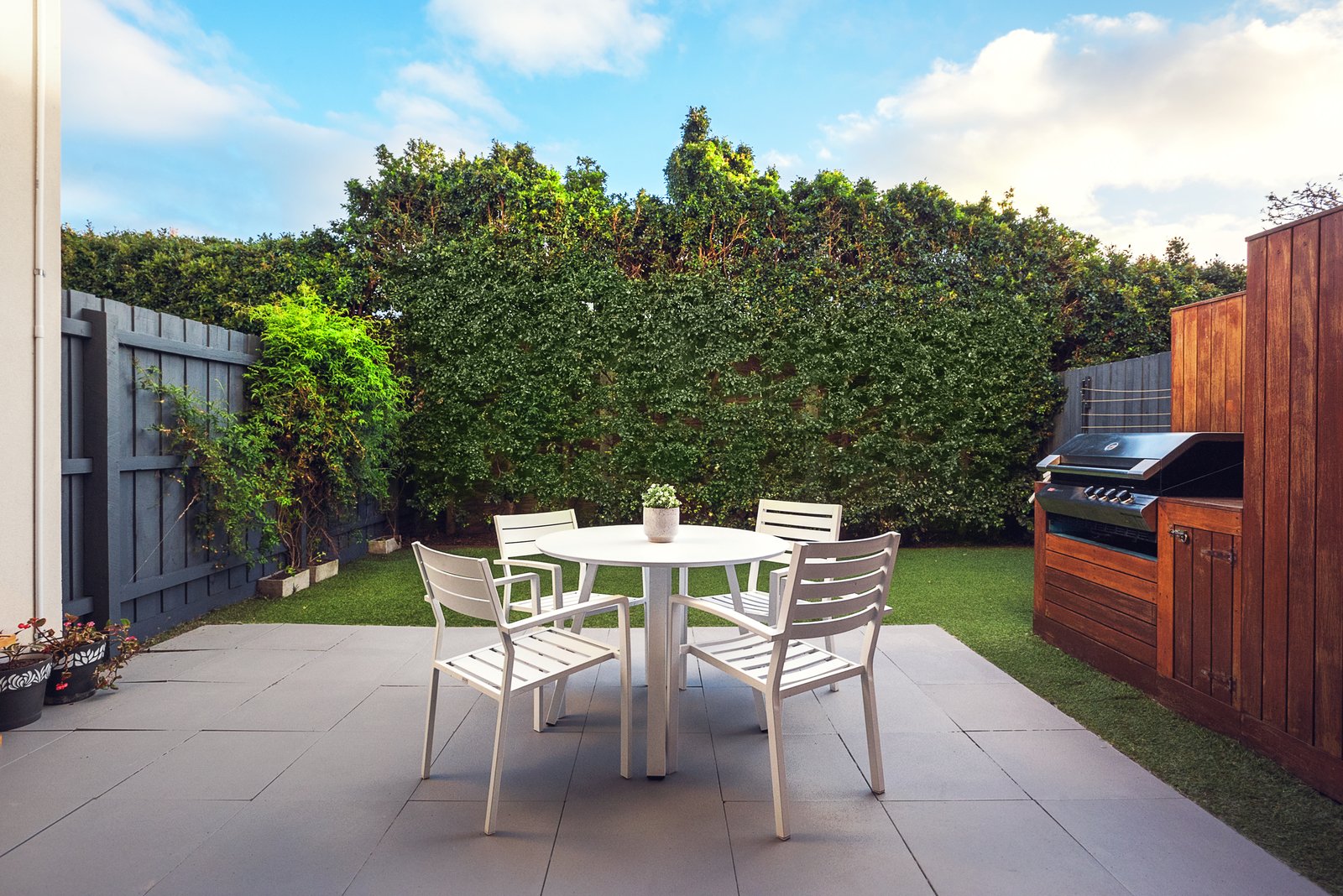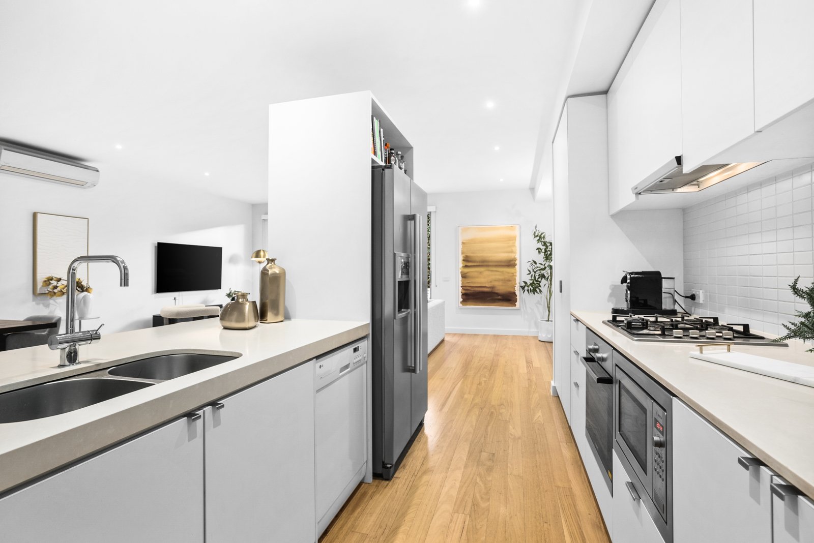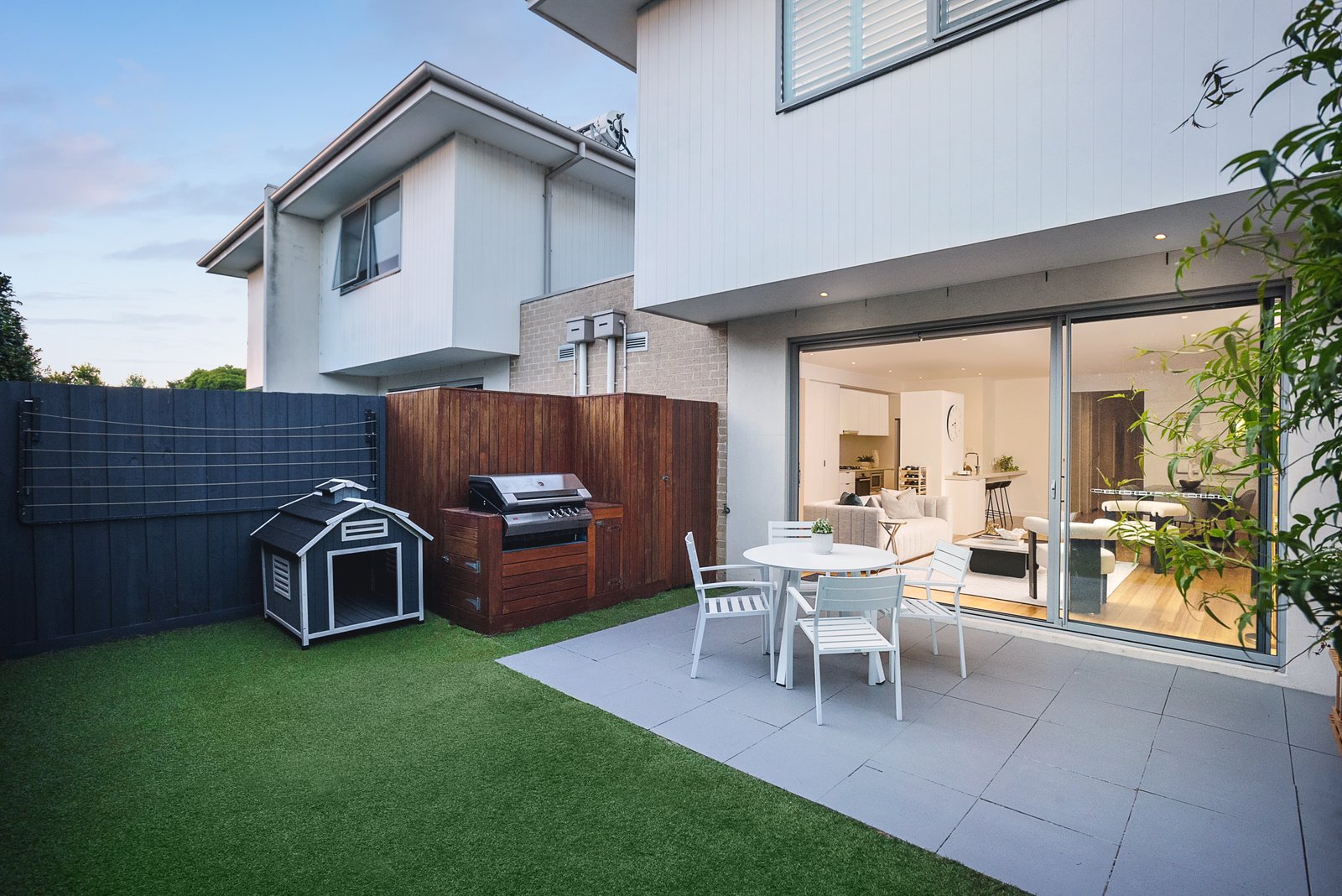 Entertain in style or enjoy complete privacy within the open plan living room, beautifully oriented to capture natural light and opening to an inviting easy-care terrace and garden. The kitchen is beautifully appointed with ample storage, a suite of appliances and a brilliant laundry, while additional features include plantation shutters, powder room, heating and cooling, mains gas barbecue and a water tank.