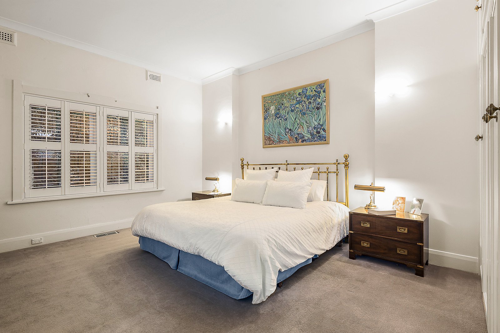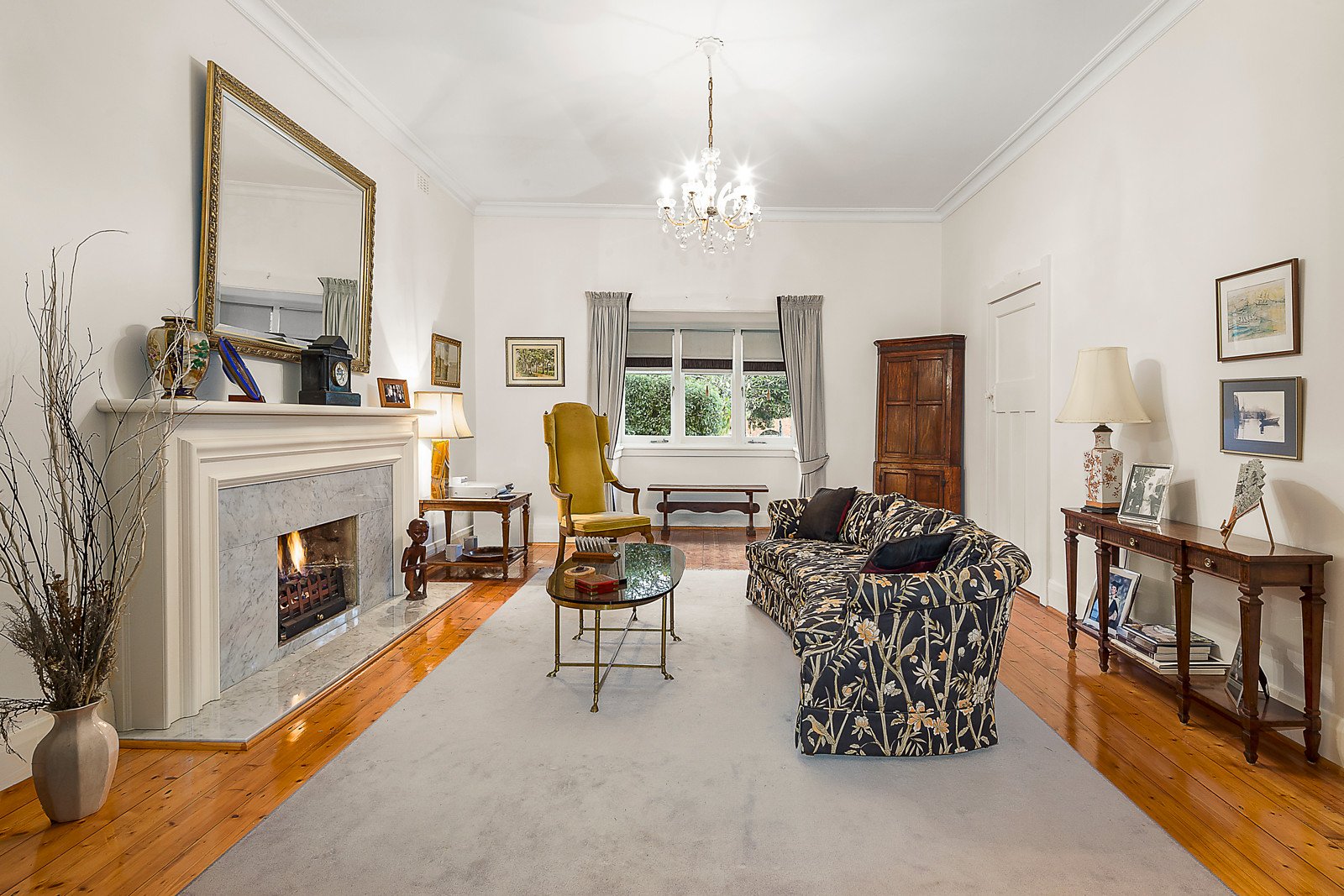 The wide entrance hall introduces a refined timber paneled library or study, elegant sitting room with gas fire and a formal dining room also with a gas fire. The superb granite kitchen and generous living and dining room open to a deep private northwest garden shaded by a magnificent Elm Tree. The main bedroom with en-suite and built in robe is accompanied by three double bedrooms with built in robes and a second bathroom.