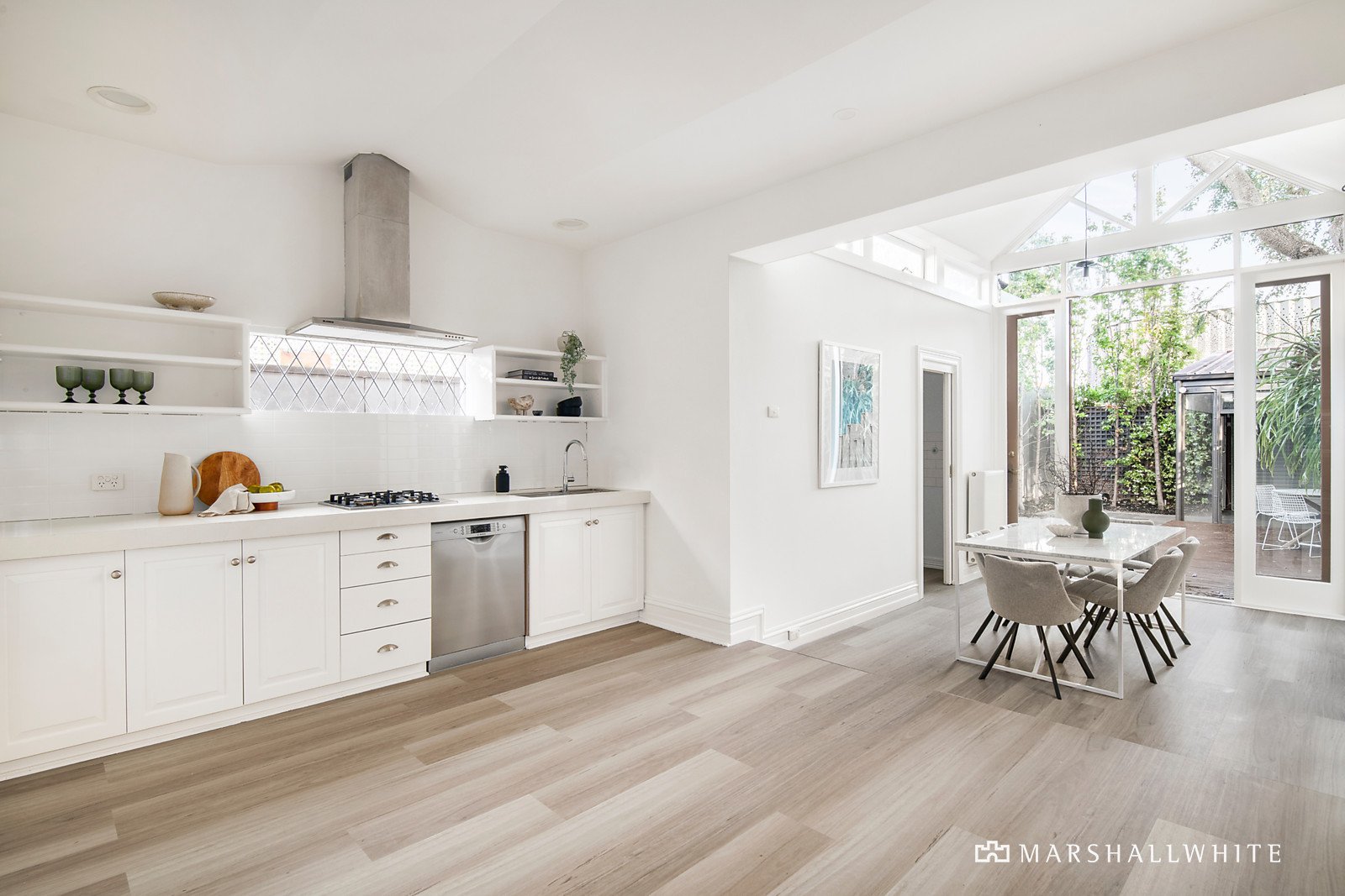 On a tree-lined boulevard flanked by the beach, Albert Park Lake and the village, this refined three-bedroom wide Edwardian home will captivate with its generous single-level dimensions, sun-drenched spaces and exceptional privacy.