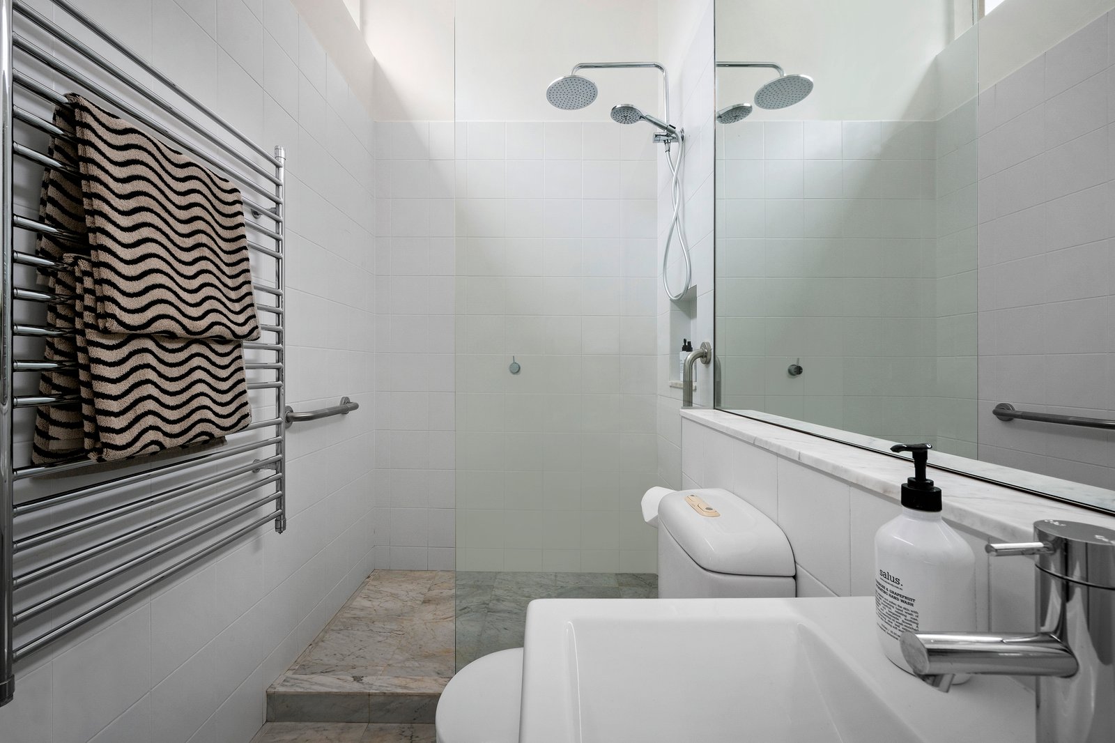 The wonderful sense of light and space is accentuated upstairs by the main bedroom with city outlooks, a marble-tiled en suite and a walk-in robe. An exclusive one-way street close to South Yarra station, Fawkner Park, and premier schools includes a powder room, split system heating/cooling, underfloor heating, intercom, high ceilings, European laundry, irrigation, and ample storage.