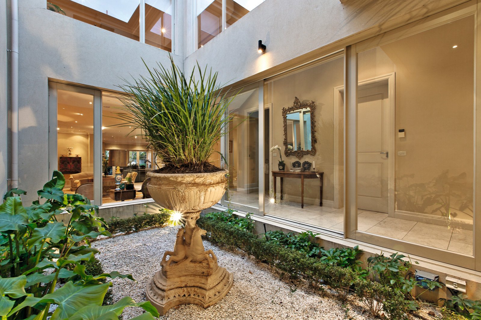 Utterly elegant, this boutique contemporary town residence presents versatile living options in a serene setting, moments from Glenferrie Rd, Malvern Gardens and a host of distinguished schools. A spacious first floor retreat complements three generous bedrooms each with an accompanying bathroom and three separate tranquil courtyards disperse plentiful natural light throughout. Polished timber and marble tiled floors create flow throughout the ground floor encompassing guest bedroom suite, formal sitting/dining and relaxed family spaces featuring stunningly sleek Miele & travertine kitchen opening to a sensationally manicured north facing rear courtyard. Double garage, parking, laundry, plantation shutters, ducted vacuum, powder room and a grand entrance hall complete this immaculately presented abode in a prime Malvern locale. Land 428sqm approx.