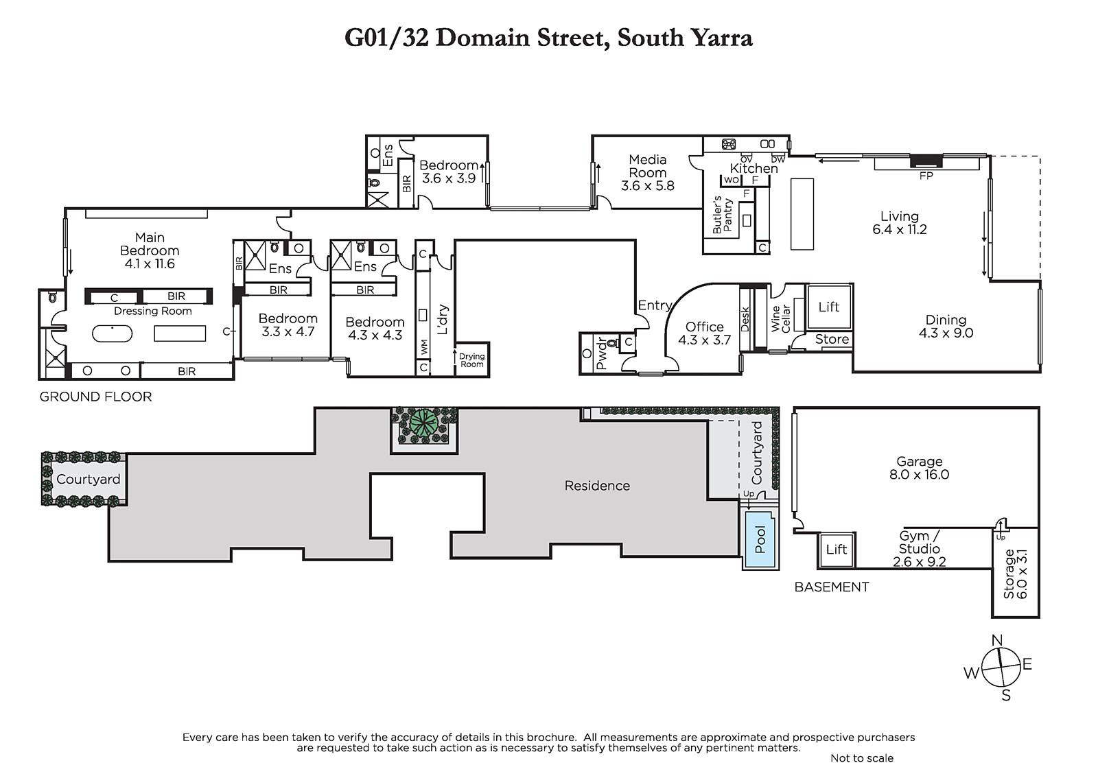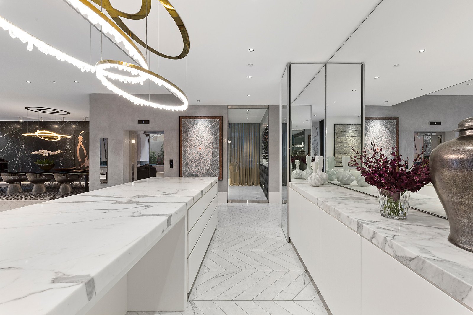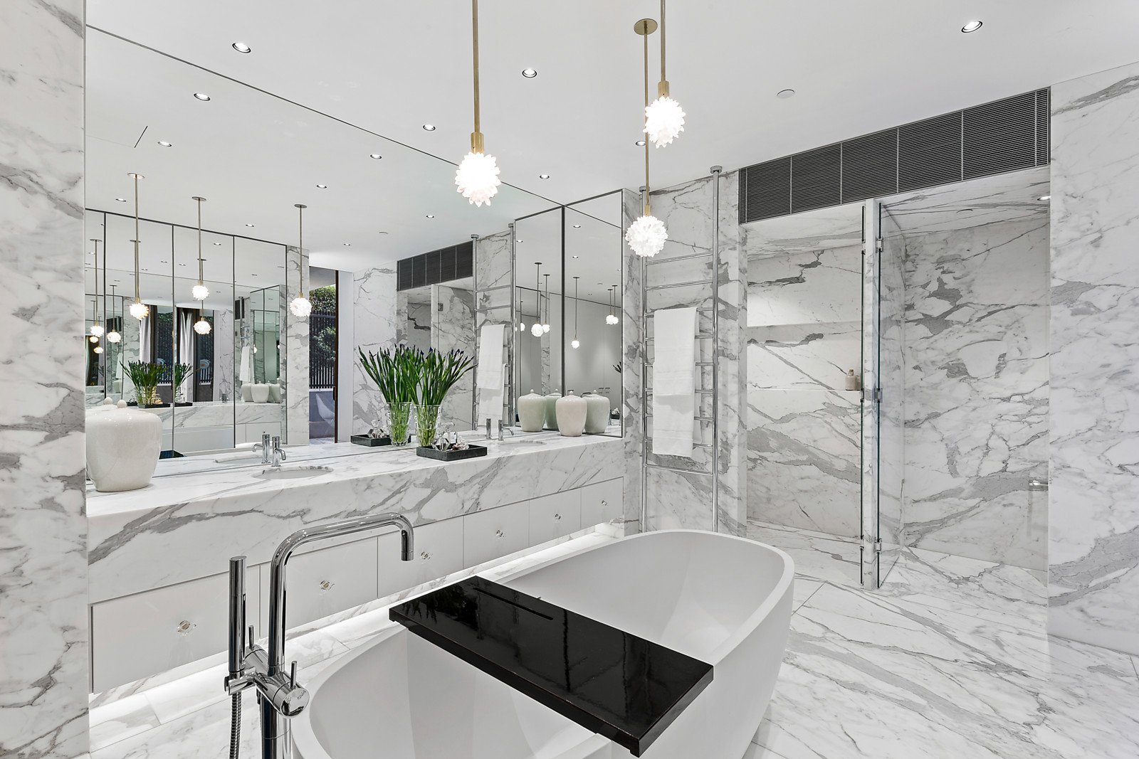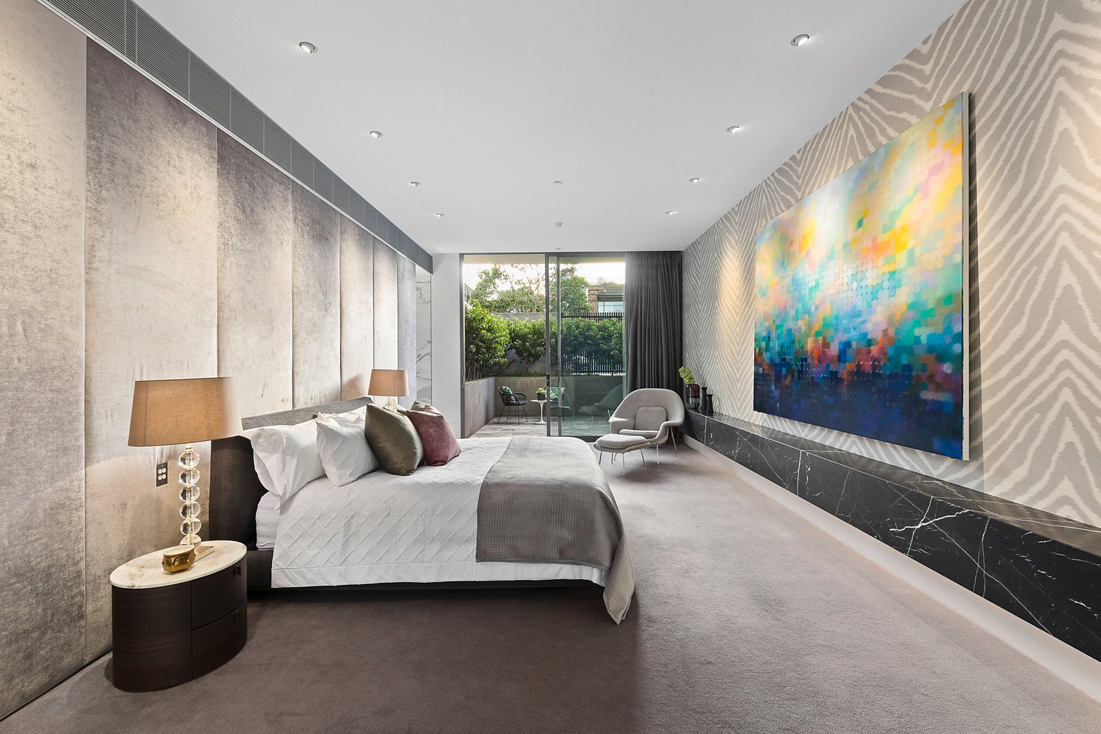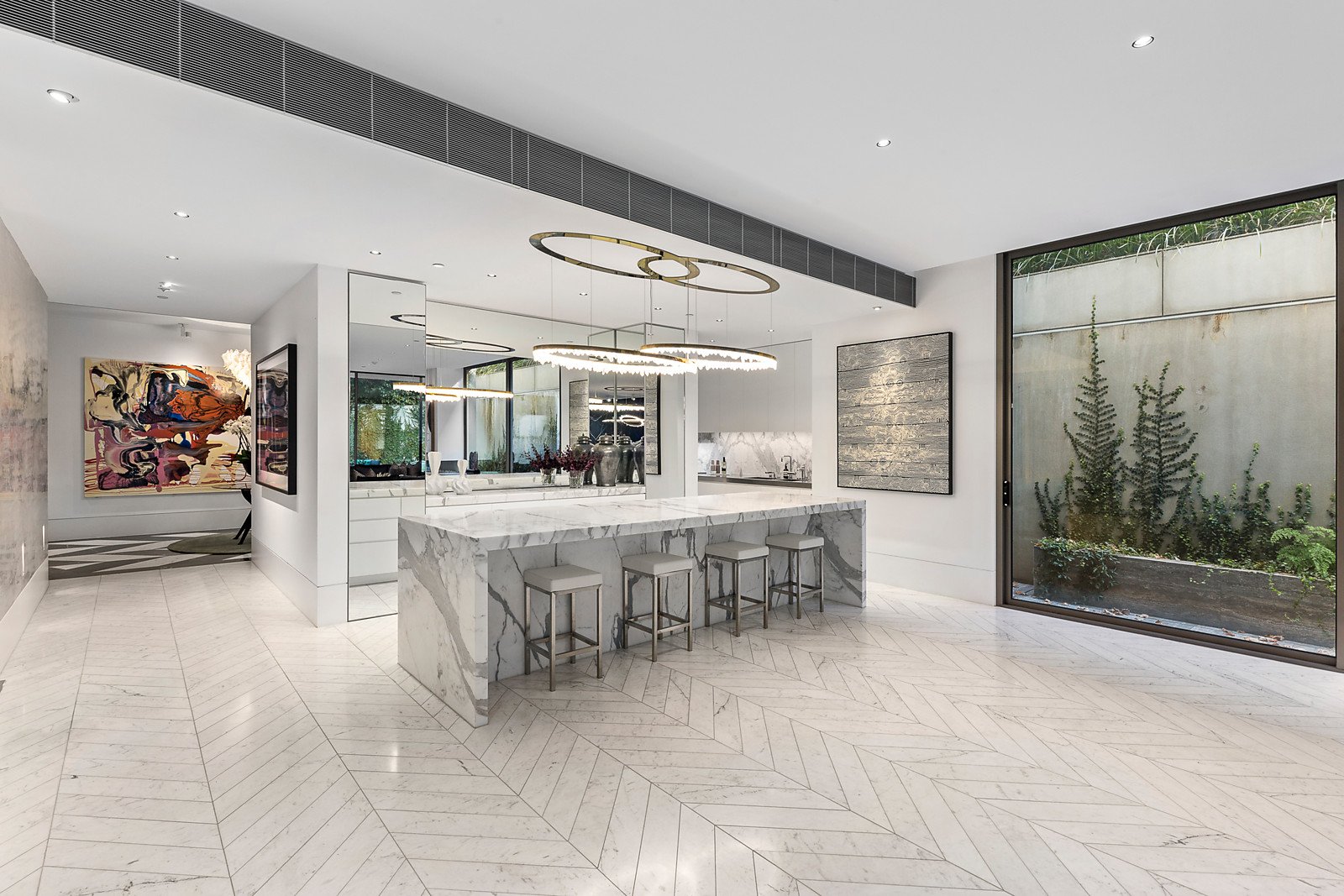 One of only three and advantaged by a ground level position, the dramatic reception hall sets the benchmark for design with chequerboard marble floors, circular recessed ceiling and an inspired hand crafted chandelier. Marble parquetry continues through the gallery hall to a serene study with a seductive curved wall and a media room or retreat overlooking a tranquil, leafy light-well. The spectacular main bedroom with ample robes, dressing room and a sumptuous marble en-suite opens to a private west-facing courtyard. The three additional double bedrooms all feature marble en-suites and built in robes. Behind a sleek Calacatta marble island and bar designed for entertaining, the sensational gourmet kitchen effortlessly caters to every culinary demand with integrated Miele, Maytag & AEG appliances including 2 fridge/freezers and a butler's pantry. Palatial in scale, the extravagant sitting and dining areas featuring a gas pebble fire and stunning temperature controlled wine display room open to a private stone paved covered al fresco terrace with picturesque heated pool. A lift down to the basement level reveals a gym or yoga room and private 6 car garage.