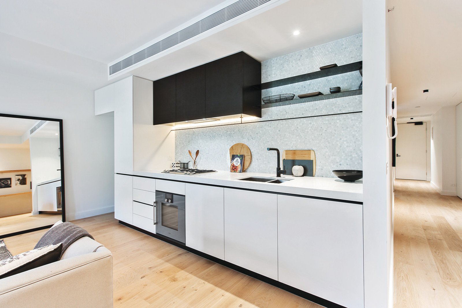 Contemporary brilliance, superior designer panache, brilliant and peaceful, leafy outlet combine with a captivating sense of inner-city sophistication in this brand new, two bedroom apartment that has spared no expense whatsoever. Part of the brand new and highly anticipated 'Holly' building and one of only fourteen, this is a large, boutique apartment suited to the most discerning lovers of urban living as well as down-sizers seeking an uncompromising lifestyle edge. Immediately captivating with atrium gardens, the building is fearless in its aim to impress and the apartment itself is equally committed to excellence. Gaggenau appliances are fully integrated within a kitchen that highlights vast stone benches and premium cabinetry, as open-plan living opens to a broad entertainers' balcony with quiet, leafy views. The master suite is enormous with a vogue ensuite, alcove study and walk-in robes, whilst there are robes in the second bedroom, central ducted heating and cooling, plus secure video entry, two coveted basement parking spaces, a storage room and double glazing to preserve a remarkable sense of sanctuary. Within walking distance of both Chapel St and Fitzroy St, the allure of this cosmopolitan location includes cafes, strip shopping, restaurants and bars as well as all modes of public transport and the natural joys of Albert Park Lake.