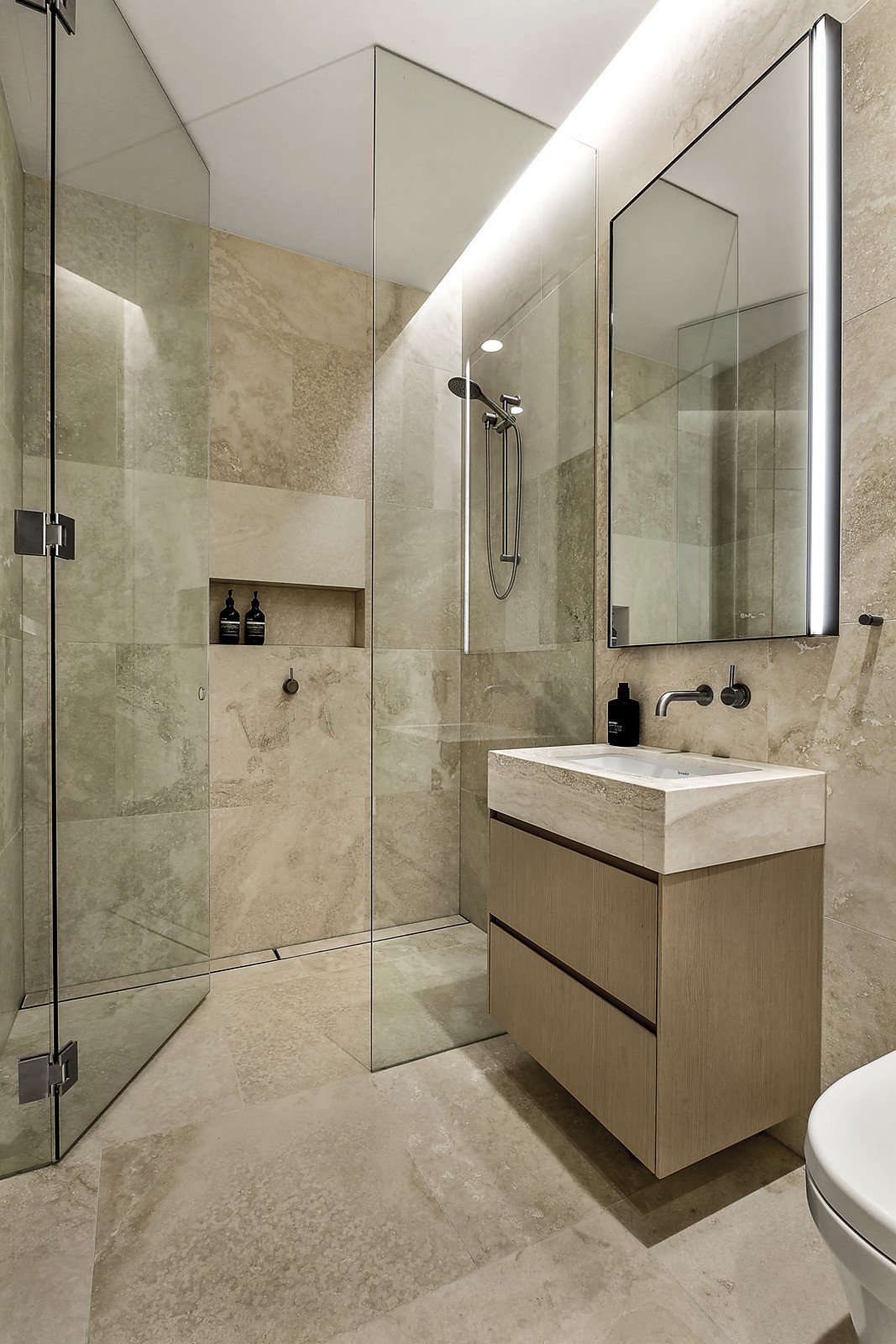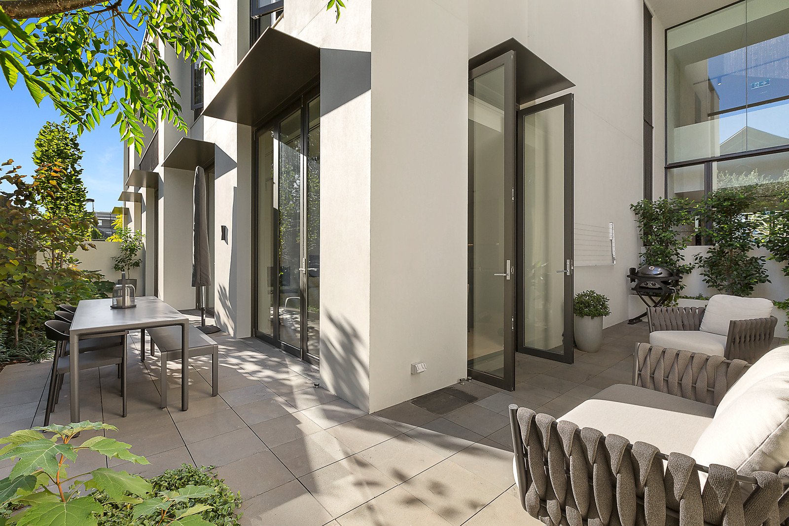 Architectural integrity and extraordinary quality are magnificent in this luxurious light-filled apartment, metres from Church Street. Acclaimed international architects Fearon Hay have created a private two-bedroom hidden wonder, where luxe finishes and every feature are exquisite. This can be your state-of-the-art downsizer or easy-care Brighton address, with a coveted ground-floor position and views of Trinity Church. Design excellence shows in the living and dining zone, with three-metre ceilings and full-height doors opening onto a wraparound courtyard landscaped by Eckersley Garden Architecture. The kitchen is spectacular with joinery by Italy's Molteni&C, brass-edged 3.5 metre long natural stone island bench and the reassuring quality of Miele ovens, induction cooktop and integrated fridge-freezer. Wake up to divine views in the main bedroom, where deluxe wardrobes feature LED lighting, accessories drawers, ample storage and a separate shoe cupboard. Both bathrooms reveal the perfect balance of beauty and practicality. Step into the ensuite and embrace the luxury of a huge double shower with church views, heated travertine floors and a wide oval bath. A total of 200sq m internal and external combined with outstanding features include two-car basement parking with secure lift access and adjacent roller-doored storage, dual-width oak floors, ducted reverse-cycle air conditioning, gas fireplace, and the finest craftsmanship. You'll find this like-new oasis two blocks from Middle Brighton station, around the corner from Church Street's shops and cafes, and close to Brighton Grammar School and the beach.