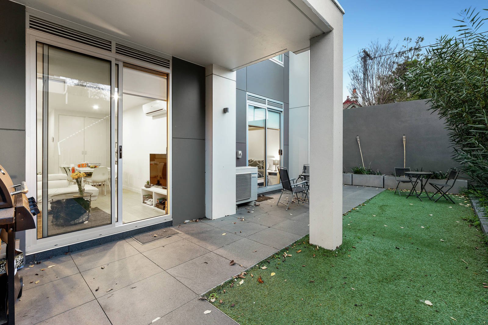 Stone-topped kitchen benches, soft close cabinetry, an under-mount sink and stainless steel gas appliances indicate a commitment to quality in a kitchen and open-plan meals/living that flows outdoors to a partly paved and partly undercover garden which more than doubles the amount of available living space. Accessed both privately and via secure video entry on Violet Grove, the home also features a private master bedroom ensuite, secure basement parking and a storage unit, as well as elevator access, mirrored robes in each bedroom and split system heating/cooling.