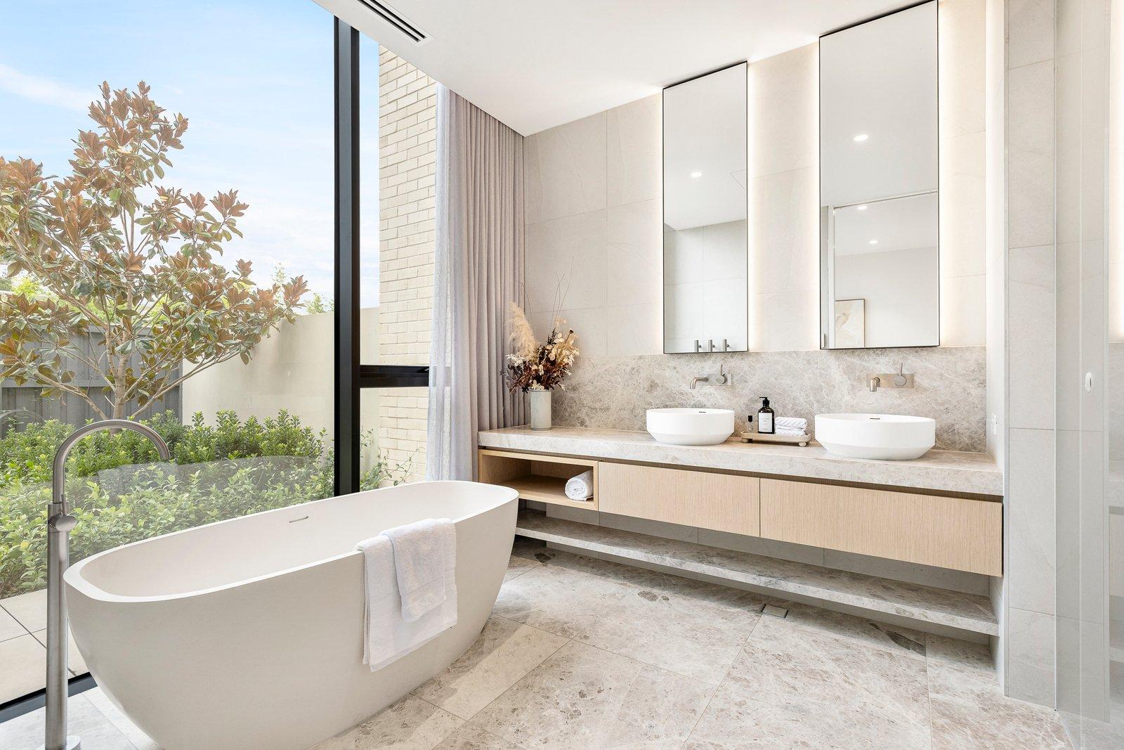 The lavish main bedroom boasts a luxurious designer ensuite and dressing room, complemented by two additional double bedrooms with robes and a stylish central bathroom.