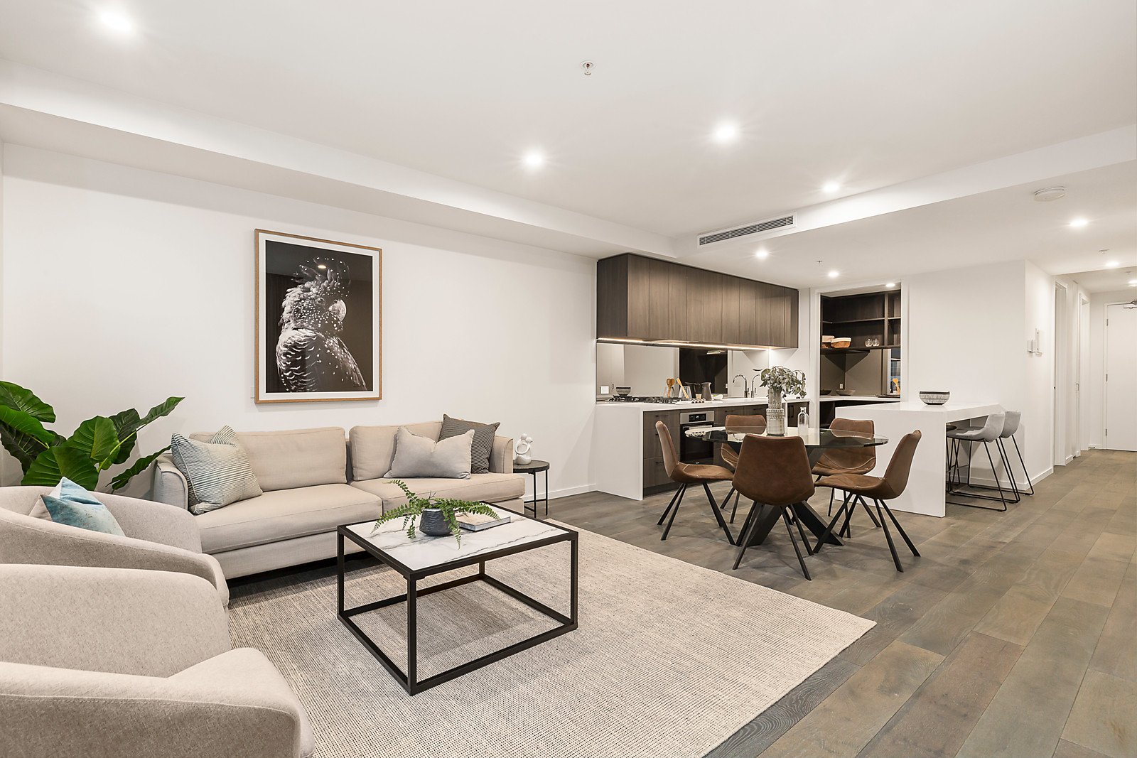 An outstanding collaboration by acclaimed architect Martin Friedrich has created a new way of living in the heart of Sandringham. Just metres from the beach, Sandringham Village shops and train station, this new two-bedroom and study north facing apartment delivers contemporary style and a quality edge. Accessed via lift from both Fernhill Road and your two side by side basement parking spaces, this is the perfect stair-free downsizer, easy-care Bayside residence or investment address. The sophisticated interior focuses on premium finishes and features. The living and dining zone opens out to your own terrace and features oak flooring, big double-glazed windows, ducted air conditioning and sea breezes. It's the perfect space to relax at home and admire the landscaped wall of greenery that frames the terrace. Everything you want in a gourmet kitchen is here, including a butler's pantry, Miele appliances and a dining bench. Each bedroom is complemented by a luxe bathroom with a walk-in shower, vertical tiles and pendant lighting, and working from home is easy with a dedicated study. Generous storage, video intercom entry, a leafy garden setting and your own security gate are just some of the features that enhance this first-class apartment.
