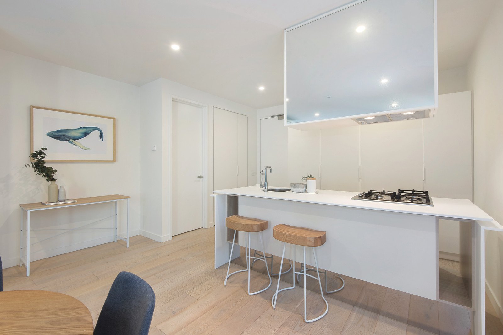 As new, this sensationally adorned apartment with contemporary finishes showcases minimalist open plan living. A designer kitchen including Bosch appliances, an island bench and built in dish drawer flows onto a fusion of indoor and outdoor entertaining space with open plan living and dining opening out onto a generous private alfresco terrace with ceiling-height glass sliding doors.