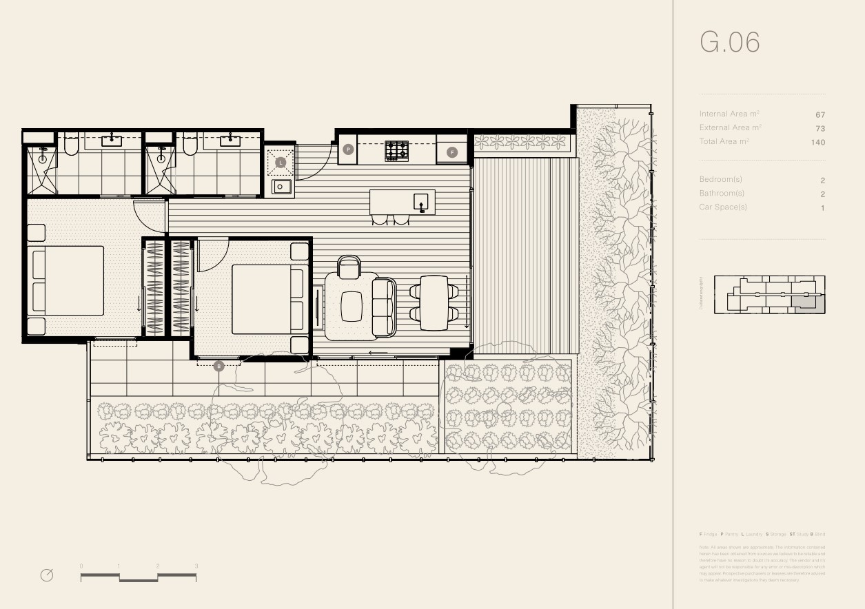 Featuring 2 carpeted bedrooms, one with full ensuite, built in robes and split system in each, fantastic open plan living incorporating the use of the private outdoor courtyard with stunning decking area. The kitchen itself is thoughtfully designed with marble bench tops, Miele appliances, feature lighting and ample storage. A cleverly designed European laundry is concealed away with extraction fan and again, ample storage. With luxury inclusions such as split-system heating and cooling, double glazed windows, security intercom, single car space (not a stacker) and storage cage, all within a boutique block of only 20 apartments.