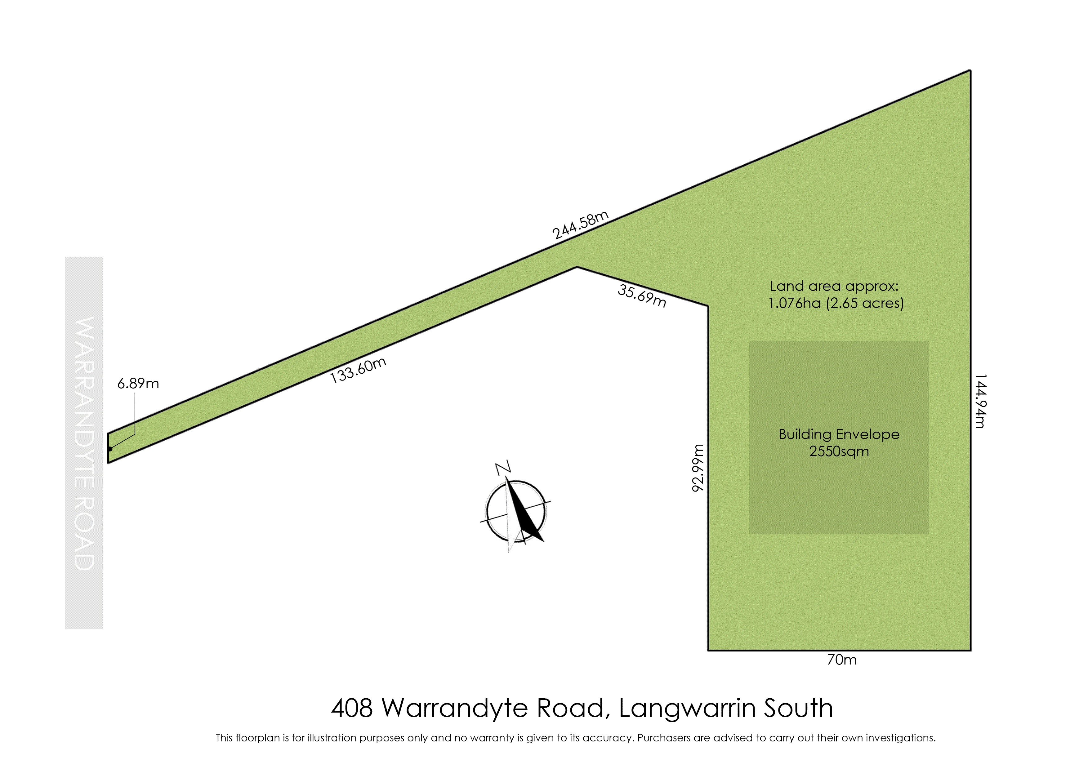 Unlock the opportunity of this incredible, north-facing parcel of land in the coveted Langwarrin South, where the charm of semi-rural serenity seamlessly converges with contemporary convenience. With 2.65 acres (approx) of flat and usable land, it provides a rare and perfect canvas to bring your dream to life. Embrace the limitless possibilities as you visualise the design, layout, and intricate details of your future home within a generous building envelope, offering the freedom to create a sanctuary tailored to your taste and lifestyle (subject to council approval).