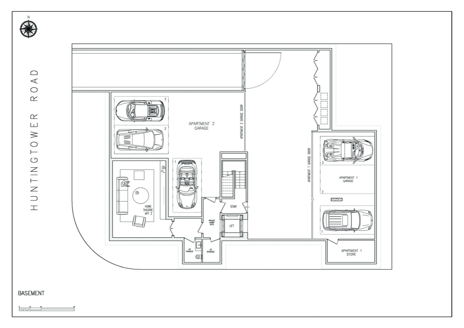 The basement level includes a private secure garage for 3 - 5 cars, Rumpus room, bathroom and ample storage.