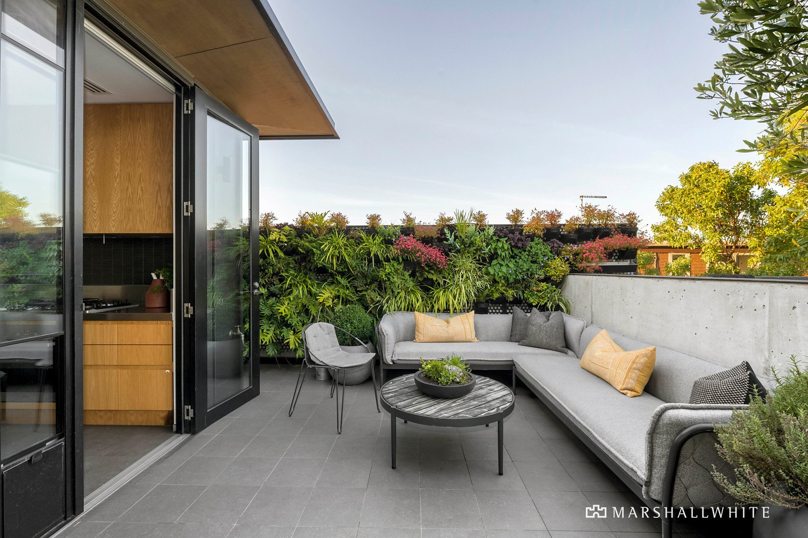 Occupying the entire top floor of a boutique Neometro designed enclave and extensively refurbished in 2019 by Clare Cousin Architects, this stunning house-sized penthouse is a vision of sophistication, designer style and understated luxury enhanced by lush garden vistas and city views.