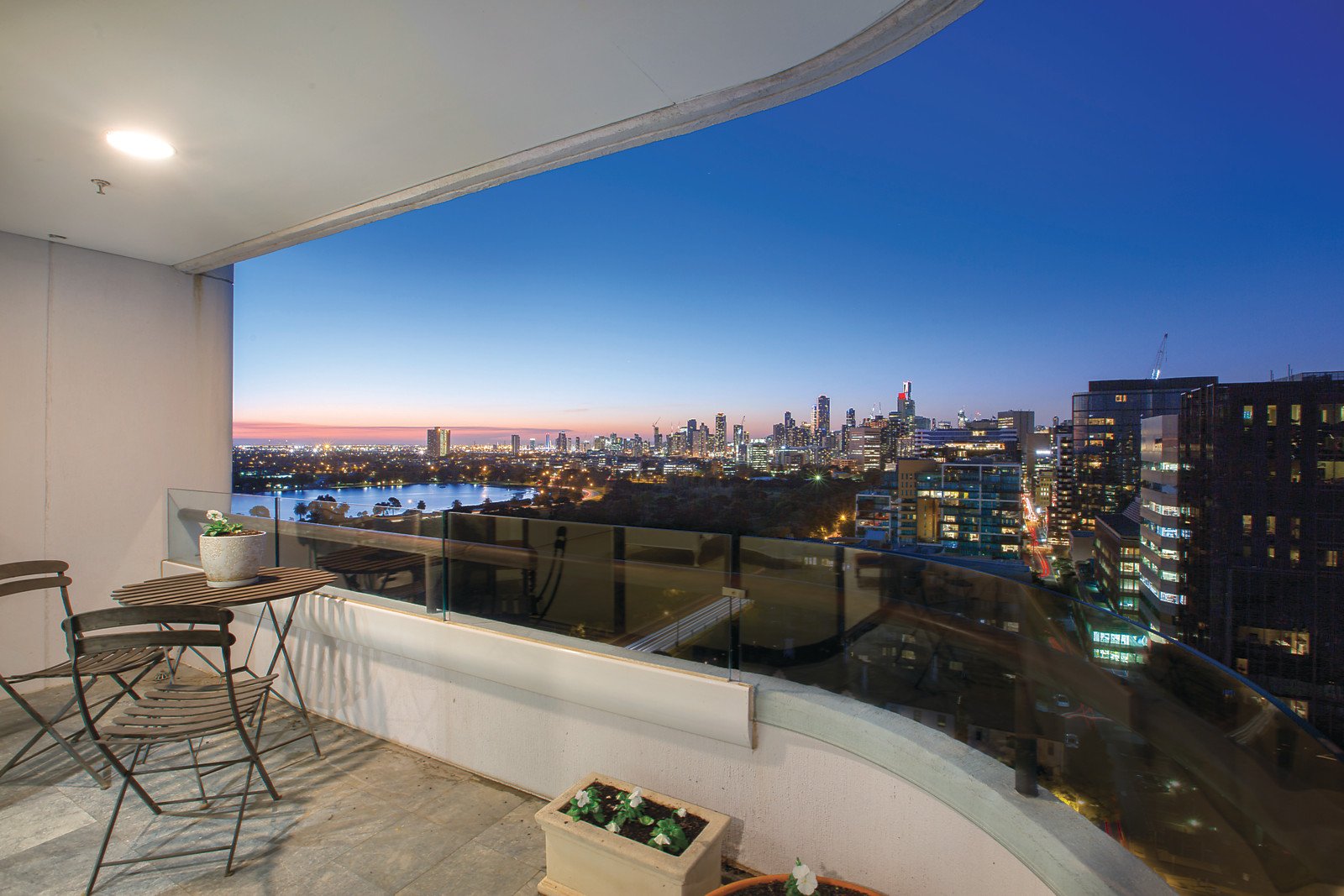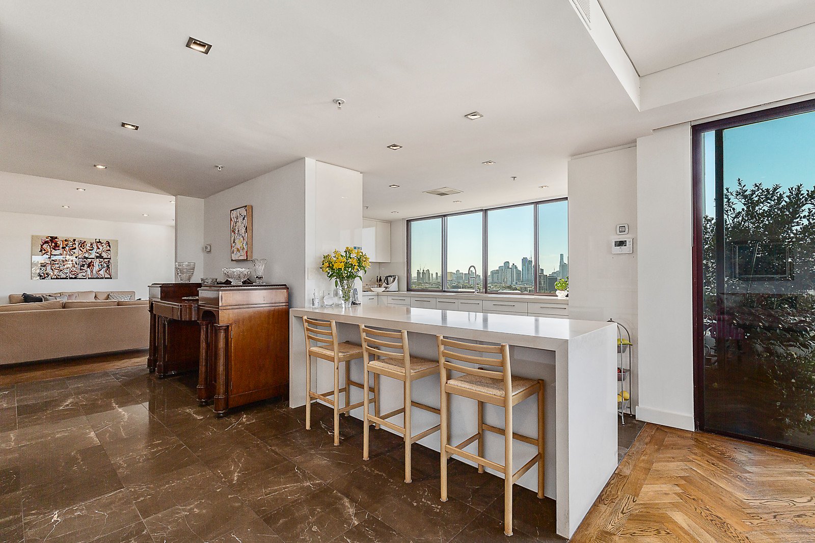 Lavishly proportioned and luxuriously appointed, this magnificent penthouse's brilliantly zoned and elegantly stylish interior spaces enjoy spectacular views of Albert Park Lake, Port Phillip Bay, the CBD, and Fawkner Park.