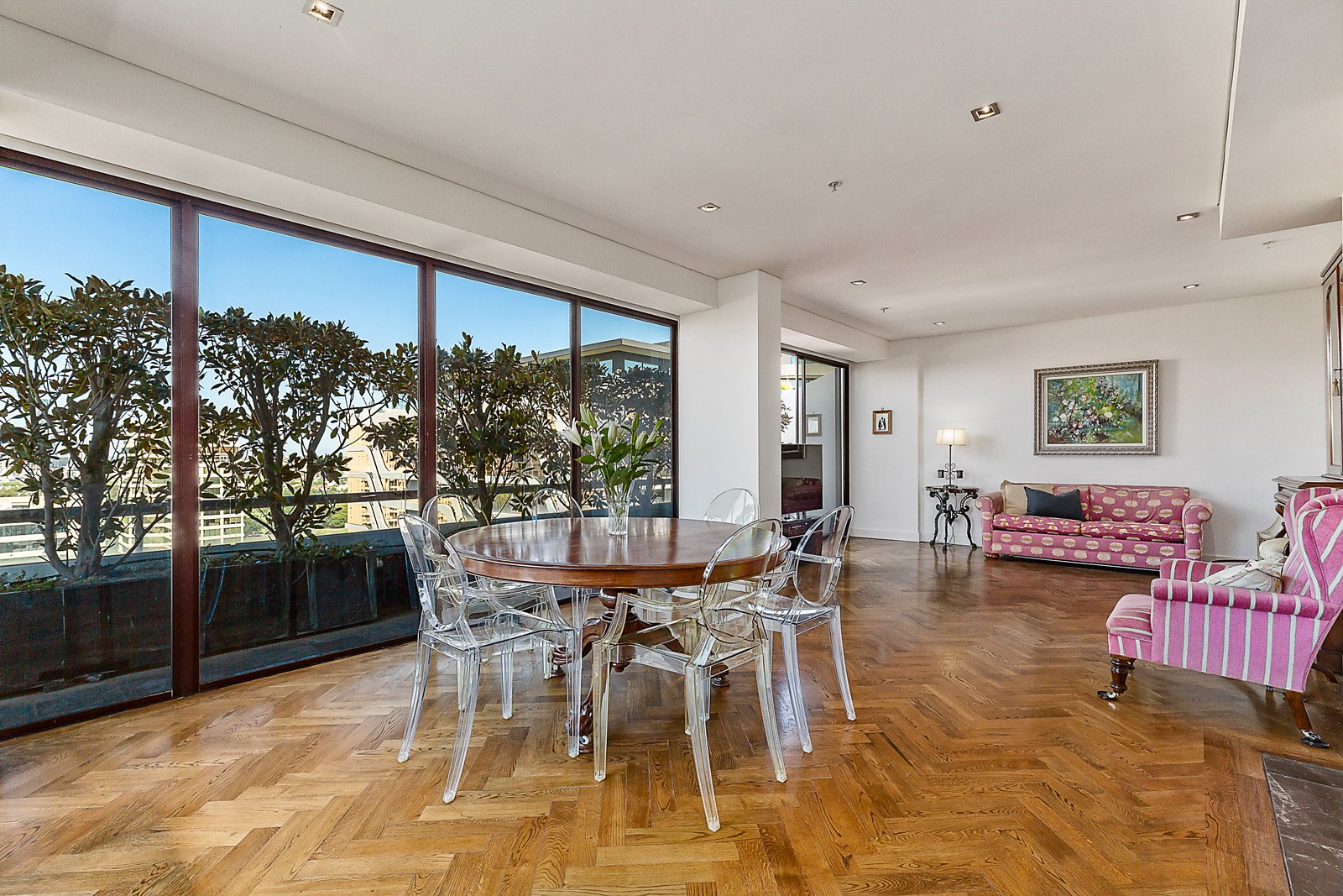 Impeccably appointed with marble and oak parquetry floors, the entrance foyer introduces a formal sitting and dining room and a generous family living and dining area with a premium Gaggenau kitchen boasting a coffee maker, integrated Liebherr fridge/freezer, two Vintec wine fridges and stone benches. All the living areas open to surrounding north and east facing balconies. The cleverly zoned family accommodation comprises a captivating large master bedroom with walk in robe and en-suite, three additional double bedrooms with built in robes, and a central designer bathroom.