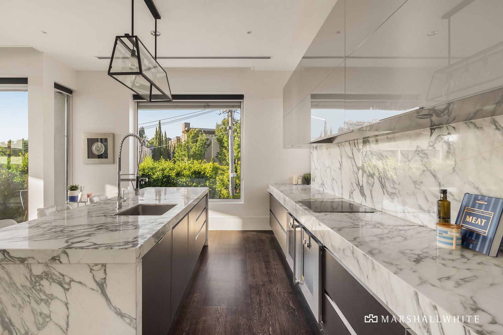 The apartment features cutting-edge contemporary designer finishes and clean lines delivering a sublime open-plan living environment. With wide dark stained Oak flooring and contrasting vivid white decor plus high ceilings and floor-to-ceiling glass walls are featured through the living areas. Opening to a north-facing entertaining terrace which capitalises on the views and provides superb indoor/outdoor entertaining options. The expansive living and dining area incorporates a sleek kitchen with butler's pantry both equipped with prestige Ilve and Gaggenau appliances, Sub Zero integrated fridge/freezer. Plus a designated study/bedroom, bathroom, lower level home office or theatre with ensuite two generous carpeted bedrooms, both with luxurious fully-tiled ensuites, one with a WIR and a sumptuous main with dressing room. Other features of this breathtaking home include video intercom and security key entry with lift access, ducted heating, cooling and vacuum, FP (living), marble bench-tops throughout, large basement storage areas and secure remote basement garage for up to four cars.