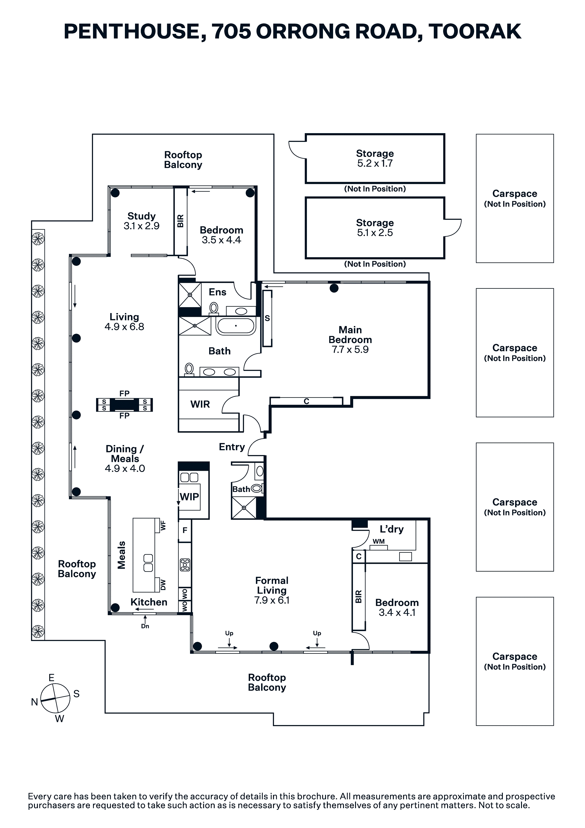 Full-height double-glazed glass frames the city skyline across the expansive open-plan interior, where a Carrara marble feature wall with a dual-sided gas fireplace draws a natural distinction between the informal living and dining areas. Both extend to wraparound north-east and western balconies, an exceptional platform for grand-scale entertaining against a luminous city backdrop. The entertainer's kitchen rises to the occasion with Carrara marble benchtops, a butler's pantry and a fully integrated suite of Miele appliances, including refrigeration, plus a Vintec wine fridge. A substantial east-facing primary suite enjoys its own terrace outlook and delivers a considered retreat through a generous sitting area, walk-in robe and exquisite ensuite, while two further bedrooms with built-in robes and bathrooms, a secondary living room and an independent light-filled study complete an exceptionally well-resolved floor plan.